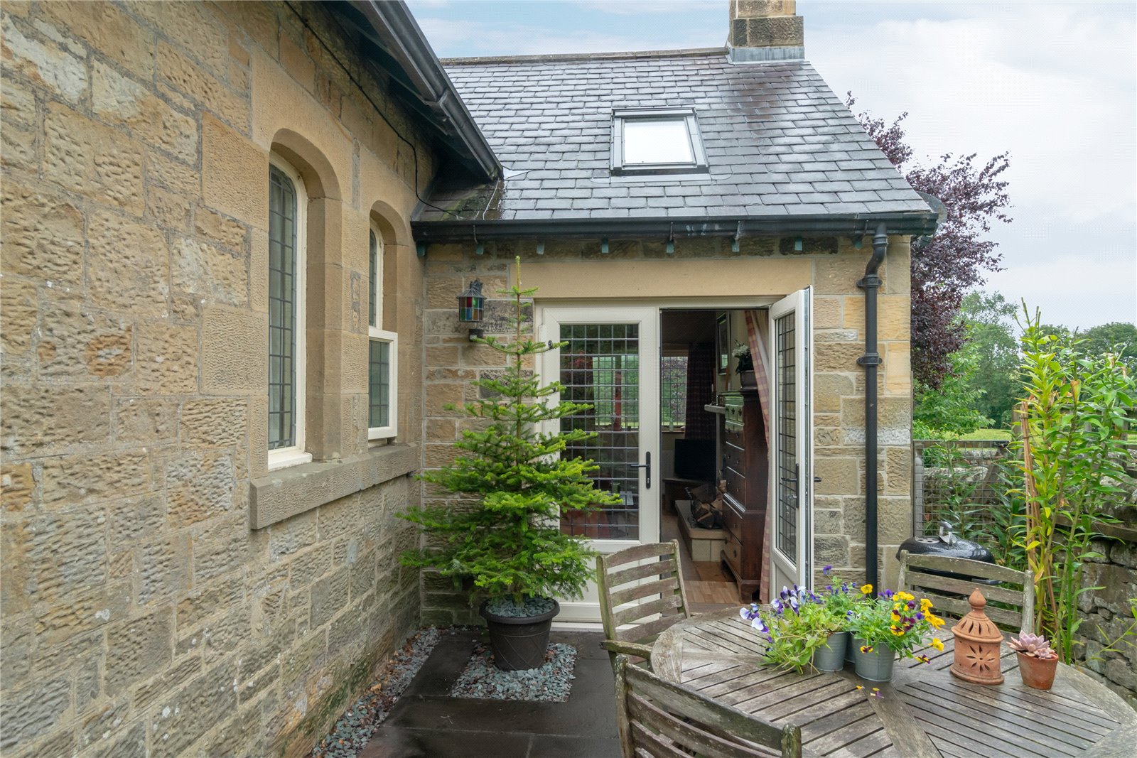 Recently fully refurbished to provide a superb room with stone flooring, open pitched ceiling and double doors onto gardens.