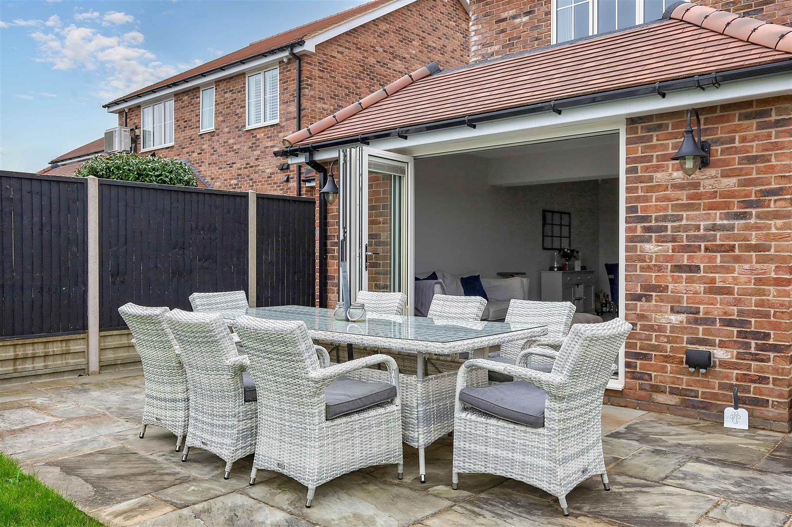 Rear Garden - Being neatly laid to lawn and backing on to fields. Spacious paved patio.
