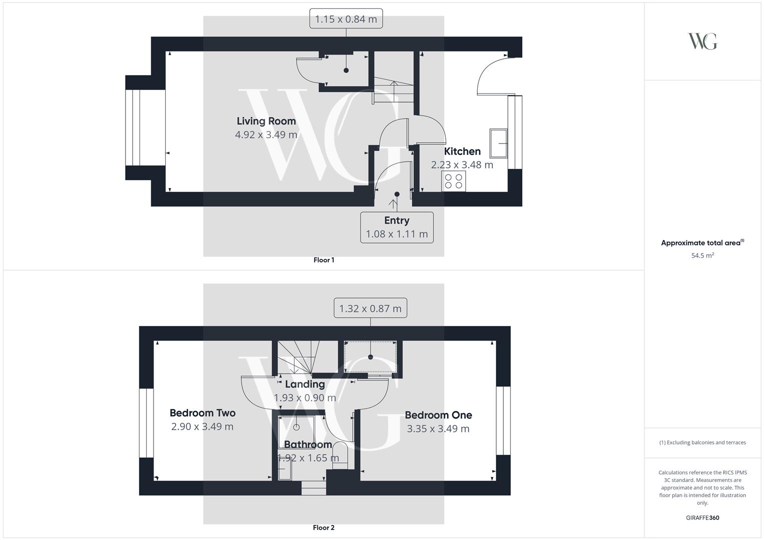 1.92 x 1.65 (6'3" x 5'4")