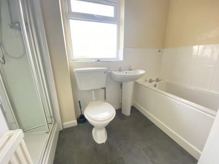 Bathroom 5' 8" x 7' 3" (1.73m x 2.21m) plus shower alcove White 4 piece suite comprising panelled bath, low level wc, wash basin and recessed tiled shower cubicle with folding glazed screen. Tiled splashbacks, radiator, uPVC sealed unit double glazed window.
