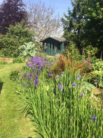 Outside the property cannot be seen from the road and is accessed via a shared gravelled drive that leads to a parking area. The garden is a key feature of this property and is a gardener's delight with its huge variety of flowering perennials, a small orchard with apple, quince and a walnut tree. The vegetable garden of raised beds includes a productive asparagus bed. In addition there is a log cabin currently used as a workshop and there is space for a double garage. Set in about a third of an acre. (sts).