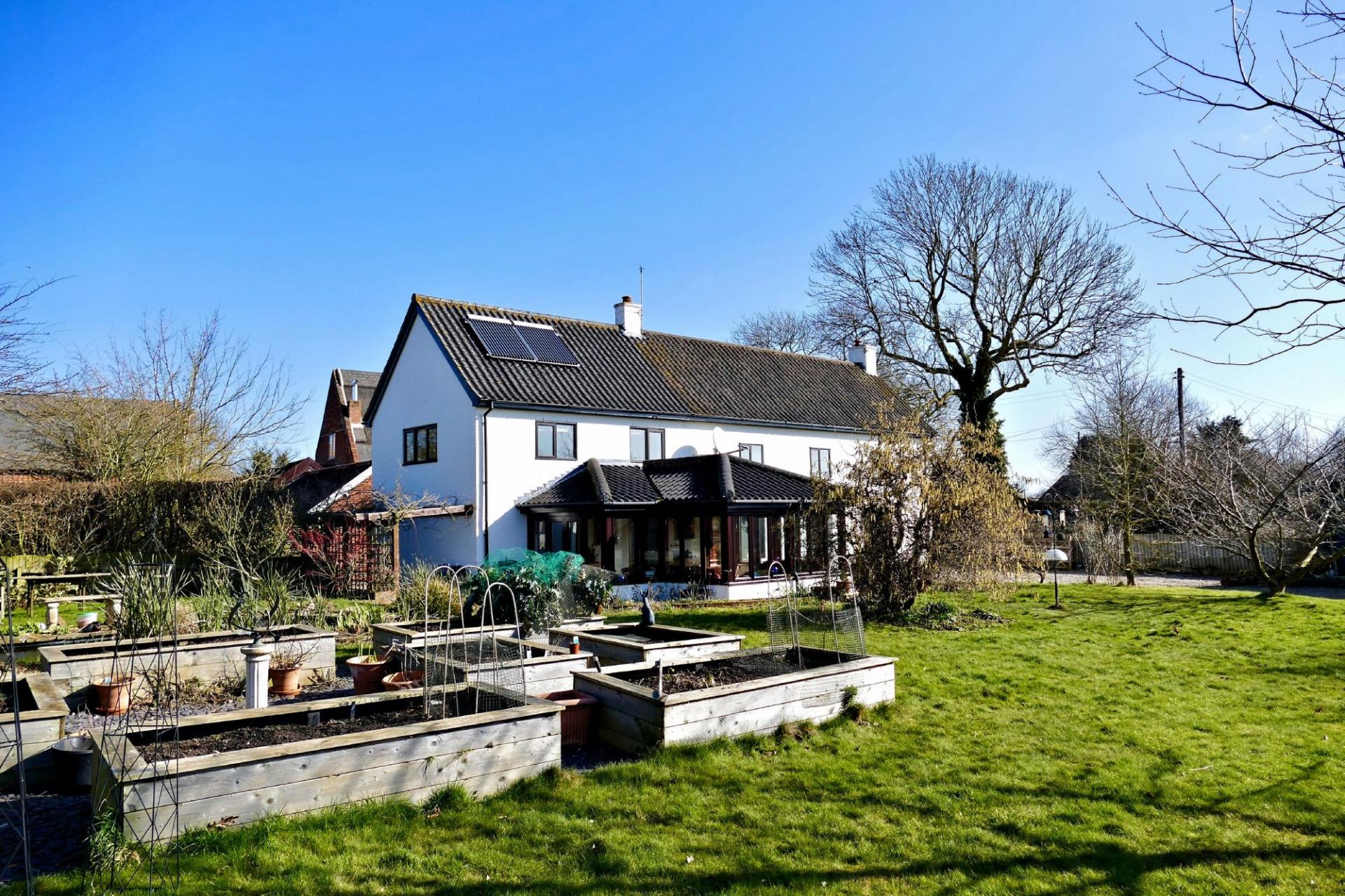 Manor Farmhouse is a charming and well-proportioned 16th century period property that has been sympathetically extended and maintained. The current owners have increased and enhanced the accommodation by adding a bedroom and an impressive south facing garden room. The property retains a wealth of character with the fine inglenook fireplace to the sitting room with a carved bressummer beam and an Aga wood burning stove. The dining room offers a lovely entertaining space and has access to the cellar that boasts two barrelled ceiling rooms. From the dining room you will find a well fitted kitchen breakfast room with plenty of cupboard space and room for a table if required. French doors lead to an impressive south facing garden room that enjoys lovely view of the garden. In addition there is a cloak/utility room.
