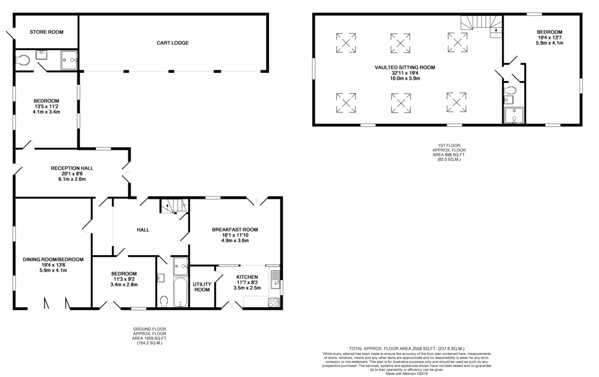 The Coach House is a charming and innovative barn conversion located in the curtilage of a Grade II listed building. The Coach House offers a wide range of period features including a fabulous vaulted first floor sitting room, exposed brick walls and ceiling timbers. The versatile accommodation is set over two floors. The ground floor offers a kitchen breakfast room, three bedrooms, bathroom, garden room and utility room. The first floor serves a fine vaulted sitting room, a master bedroom and shower room. Outside there is a central courtyard with a three bay open cart lodge. To the rear there is a partially walled garden and orchard. The grounds extend to approximately half an acre (stms).