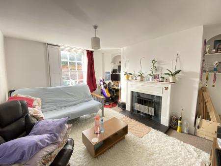 Sitting Room 12' 11" x 11' 11" (3.94m x 3.63m) into alcoves Open fireplace with mantel and stone hearth, small pane sash window with internal shutters, built in alcove cupboard with shelves above, radiator and fitted carpet.