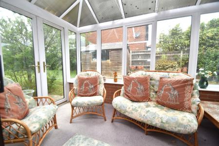 Garden Room 11' 8" x 7' 4" (3.56m x 2.24m) (Trteble Aspect) UPVC double glazed with French doors leading to the rear garden, wall light point, carpet.