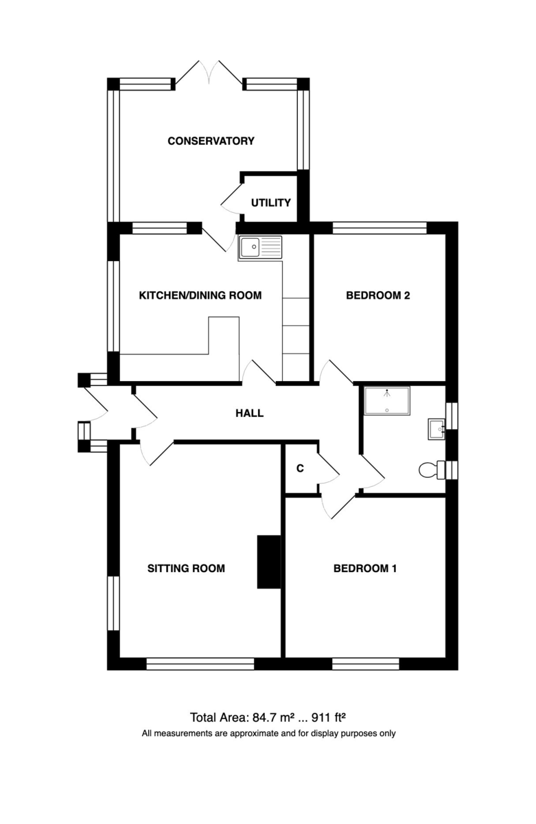 The two-bedroom accommodation is light and well presented throughout, with the added benefit of oil-fired central heating and double glazing. Inside, there is a well-appointed shower room, a welcoming sitting room featuring an open fireplace, and a kitchen/dining room providing an excellent space for everyday living and entertaining. A conservatory extension to the rear enhances the living space further and incorporates a useful small utility area.