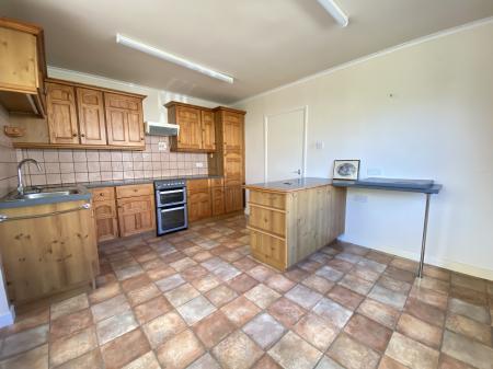 Kitchen/Dining Room 14' 1" x 10' 11" (4.29m x 3.33m) Stainless steel single drainer sink unit with mixer tap inset to laminate roll edge worktop, fitted pine fronted fitted units comprising base/drawer units and wall cupboards, peninsula breakfast bar, radiator, cushion vinyl flooring, uPVC sealed unit double glazed windows, part glazed door to: