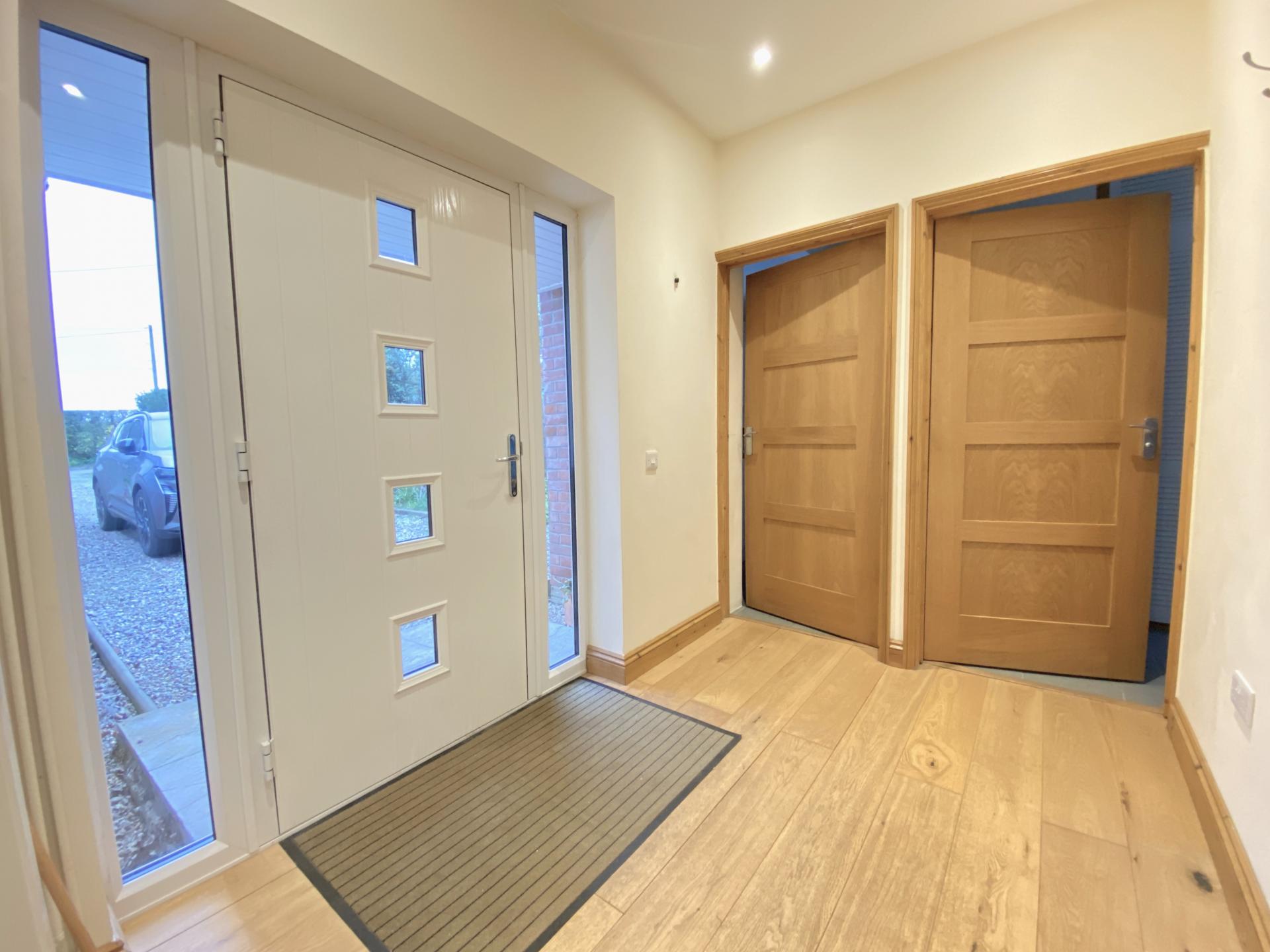 Entrance Hall 8' 9" x 6' (2.67m x 1.83m) Engineered oak flooring, inset ceiling lights, radiator, access hatch to loft.