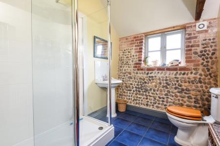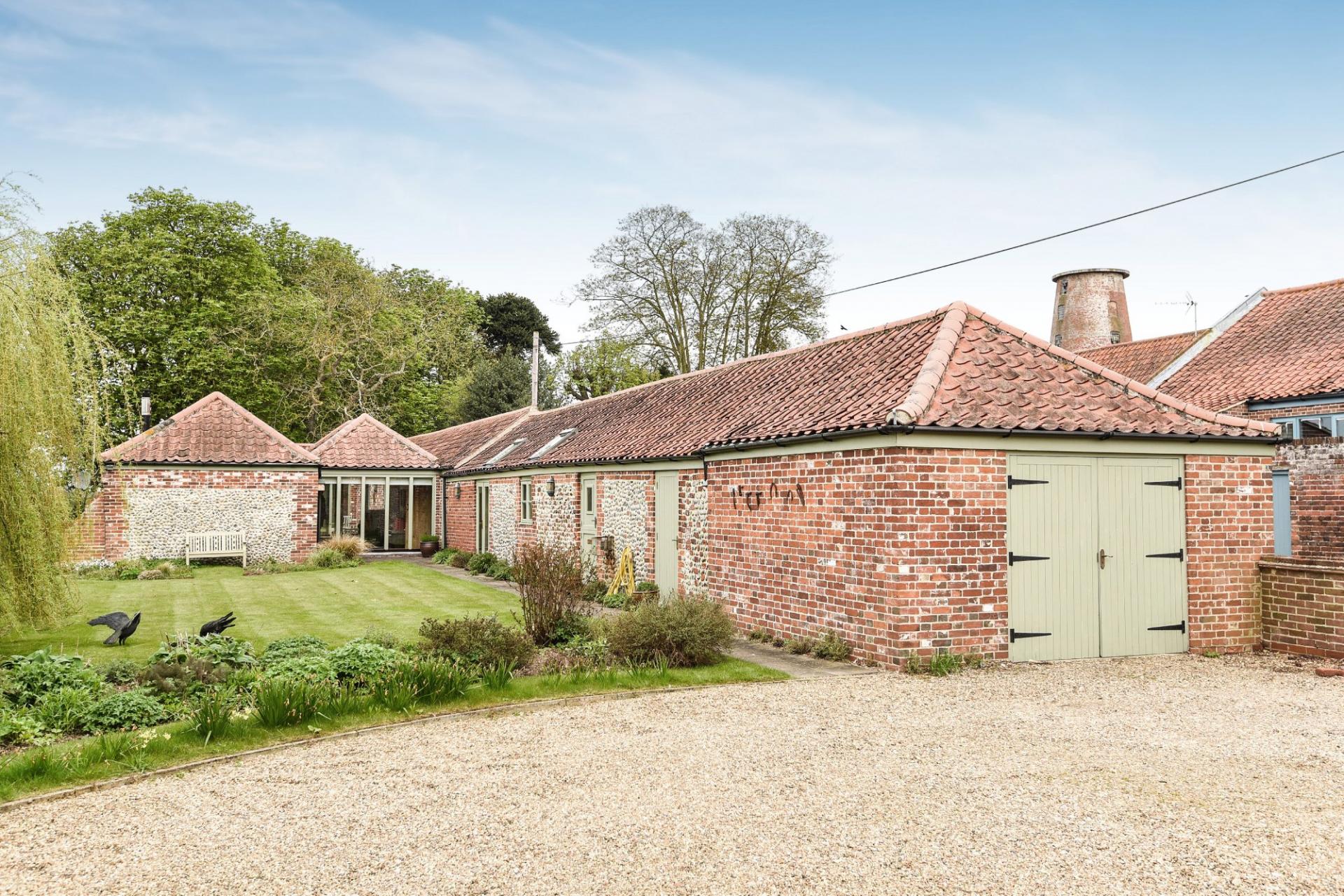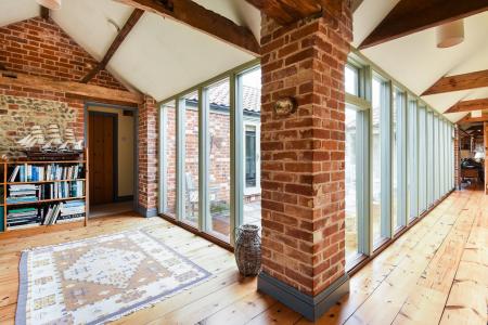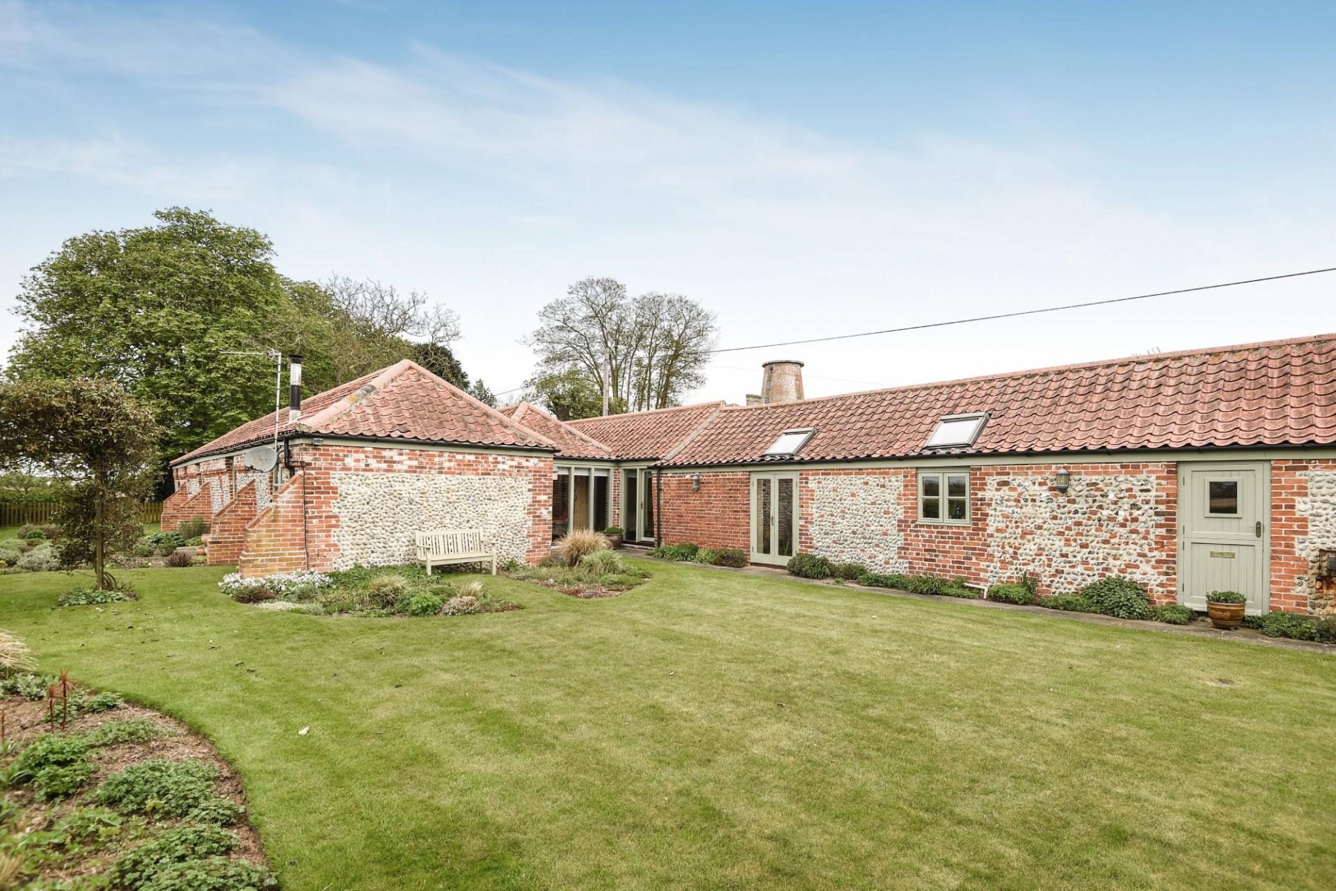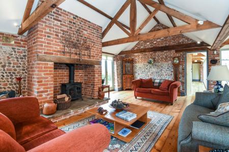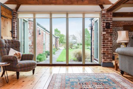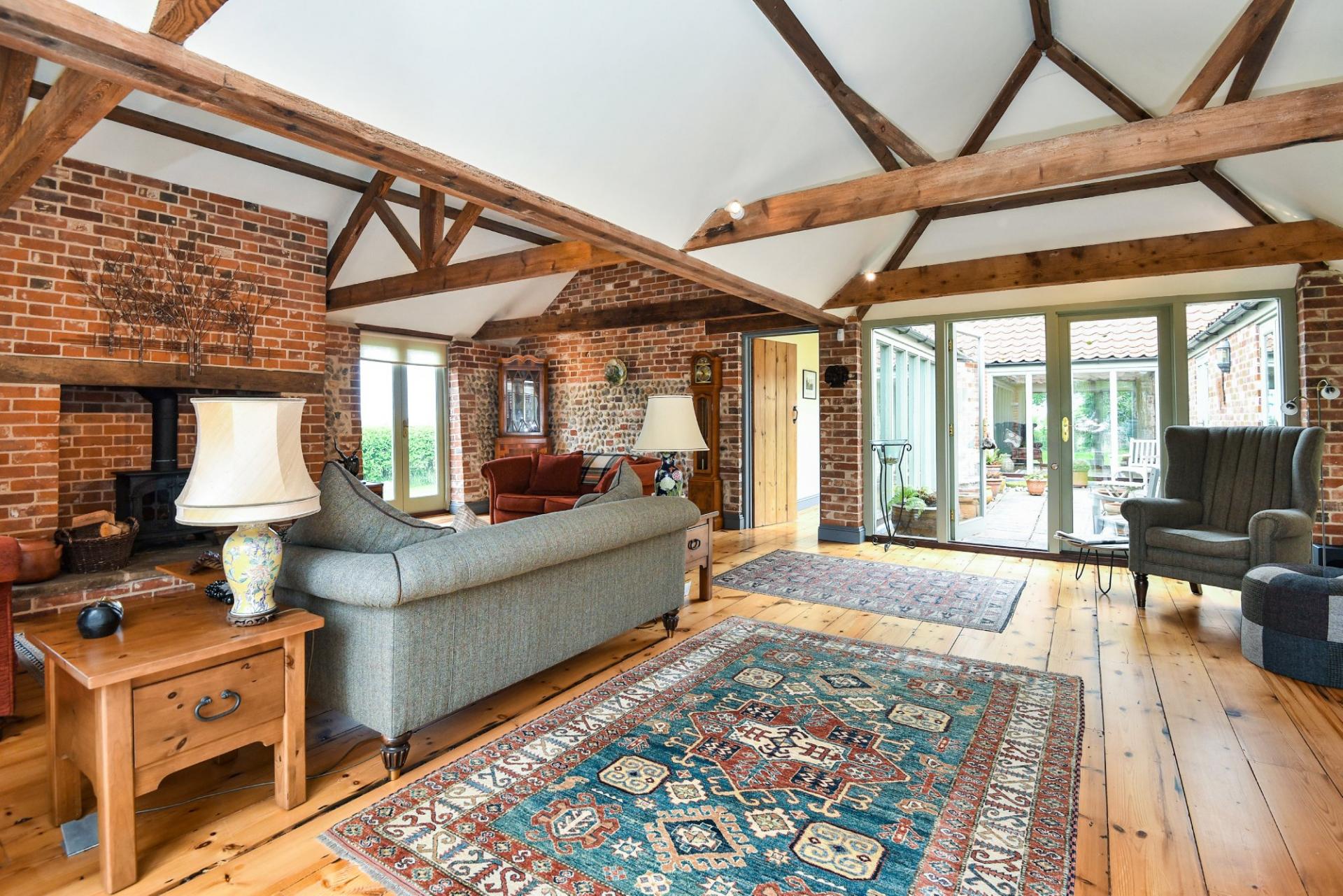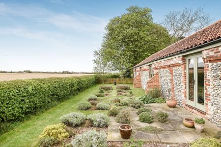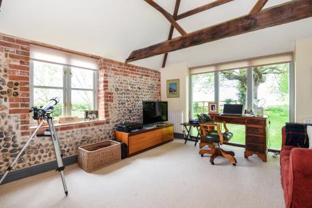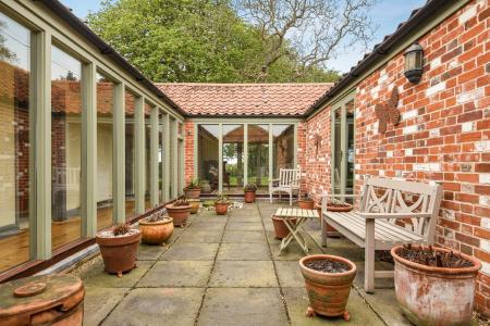 A truly stunning single storey barn conversion that is extremely well presented. The accommodation comprises vaulted ceilings, exposed timbers, brick and flints walls as well as a beautiful inner courtyard. A well fitted kitchen breakfast room, utility room, inner hall. cloakroom, fine sitting room with a central fireplace wilt a wood burning stove and views over open countryside. Four bedrooms, family shower room and two en suites.