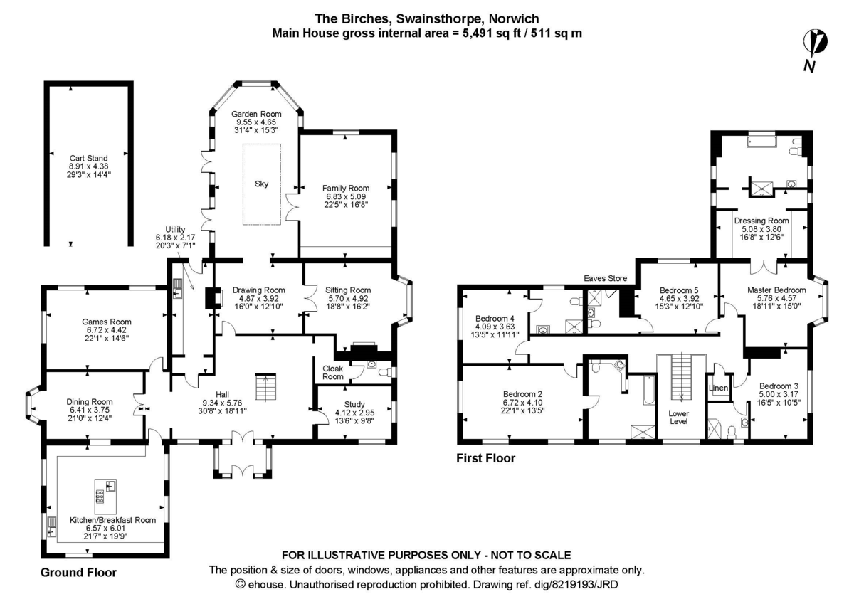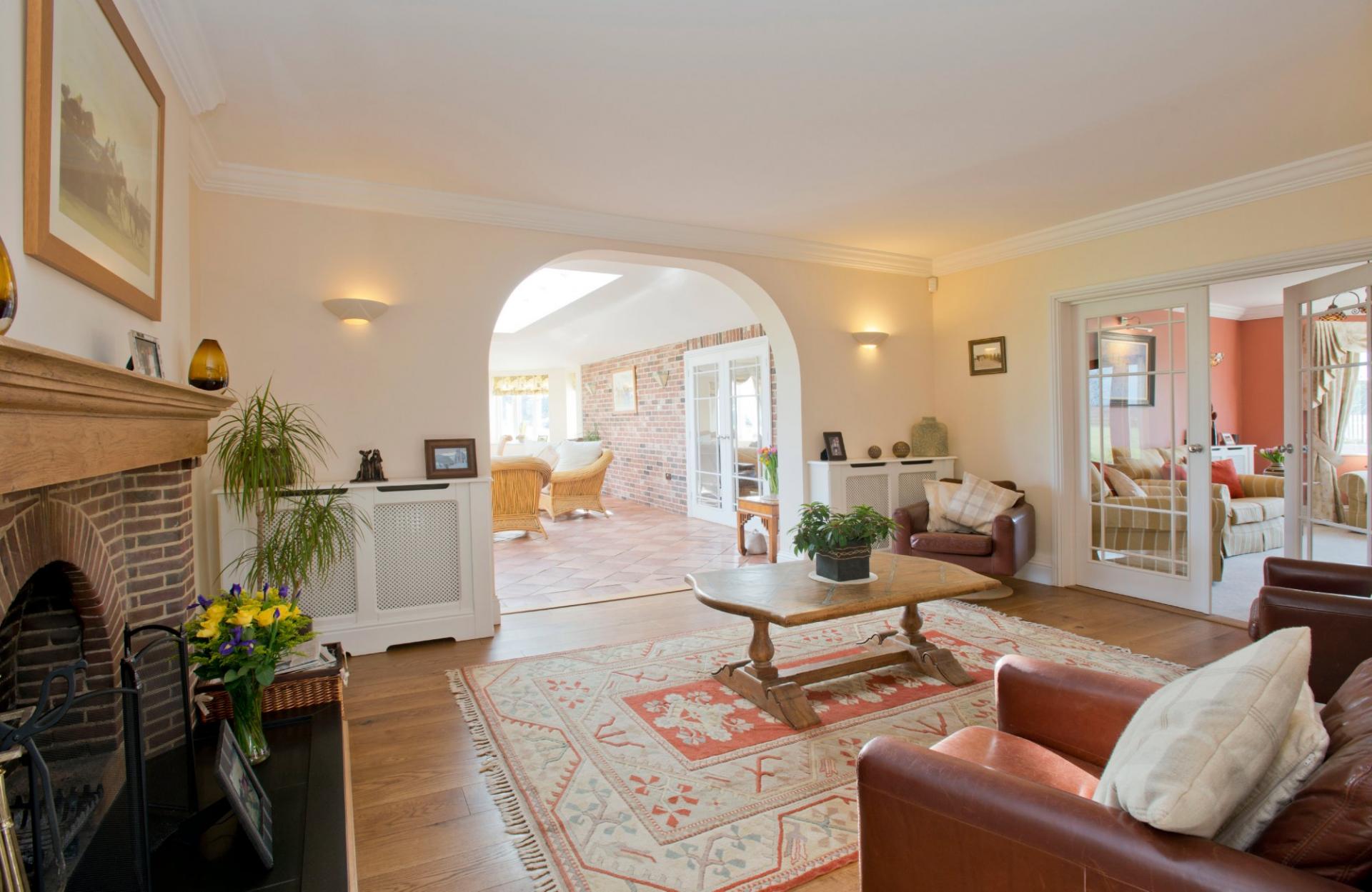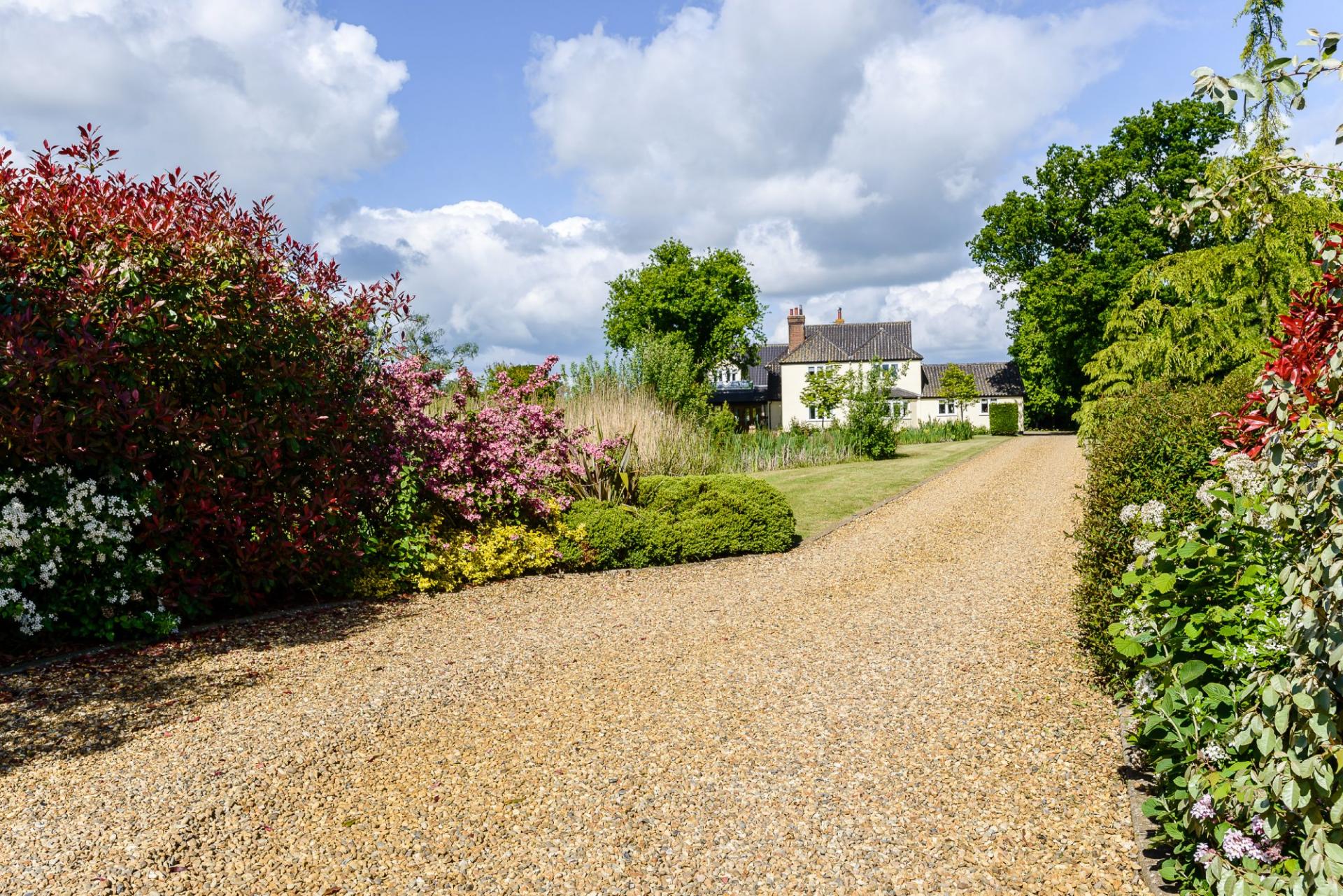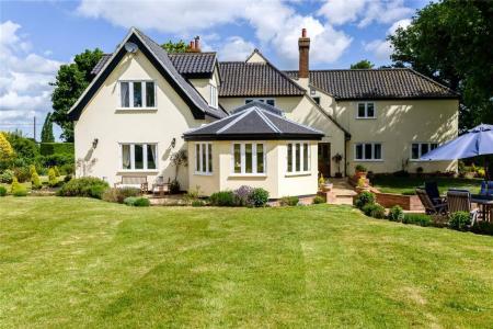 The Birches is a substantial and extremely well-presented property that offers versatile accommodation over two floors. The property is situated in a semi-rural location just 7 miles south of the Cathedral City of Norwich. The accommodation comprises an impressive reception hall with a central feature staircase and stone flooring. There is a well fitted kitchen/breakfast room with a wide range of units including an island unit with granite work surfaces. The dining room has a bay window to the side enjoying lovely views of the garden and there is a games room, utility room, study and cloakroom. From the original drawing room with its central fireplace you are led through to an impressive garden room with roof lantern and stunning views of the garden. In addition, there is a charming family room and separate sitting room. From the reception hall the staircase leads to the first floor landing. The master bedroom offers a bay window to the side, a dressing room and en-suite bath and shower room. There are four further bedrooms all with en-suites.