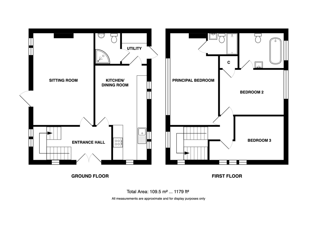 Arranged over two floors the property still retains a number of original features and has been further improved by the present owners with the addition of an en-suite off the spacious principal bedroom. The original bathroom with period style suite is now an en-suite to the second bedroom whilst the third bedroom can use the shower room on the ground floor, ideal if holiday letting is your reason for purchasing. On the ground floor impressive timber double doors with stained glass open into a welcoming, bright and airy reception hall with delightful sitting room beyond centred around a fireplace with brand new wood burning stove and a door to the rear garden. The adjacent kitchen is comprehensively fitted with units and has ample space for a dining table and four chairs. A small utility and the already mentioned shower room complete the ground floor space.