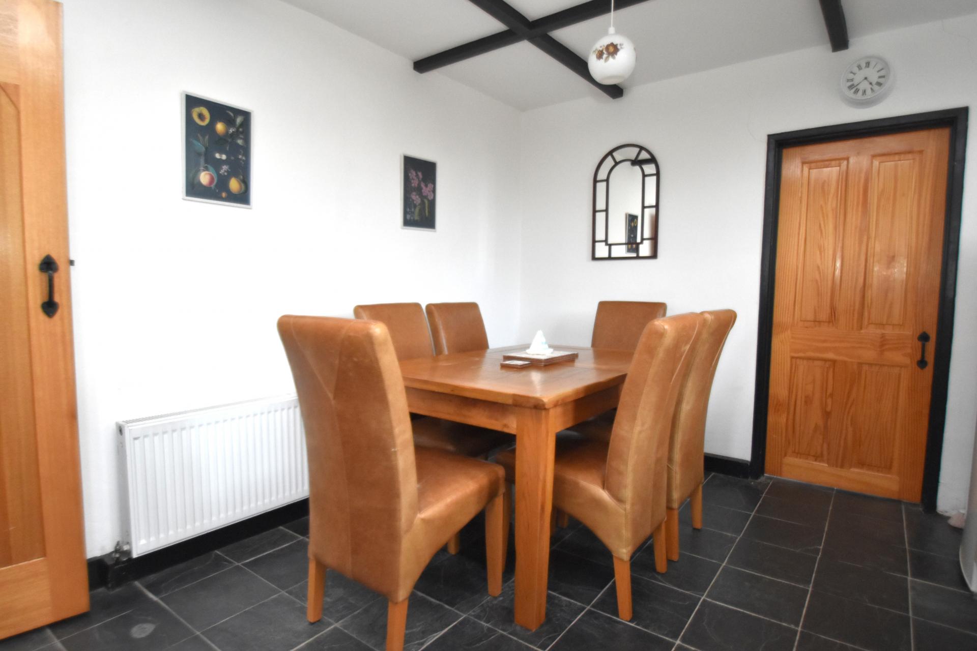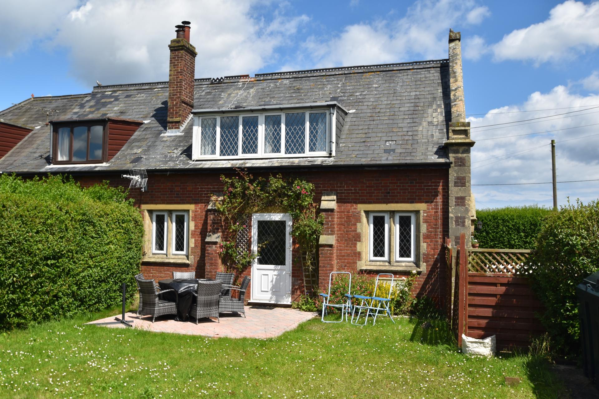 Outside Top the front of the property the garden is enclosed by a white picket fence with lawn and flower borders. Shingled off-street parking for tow vehicles. Paths to the front door and side doors. To the side of the property is the main garden which is mainly laid to lawn with patio, garden shed, hedging, oil storage tank and low retaining cobblestone wall.