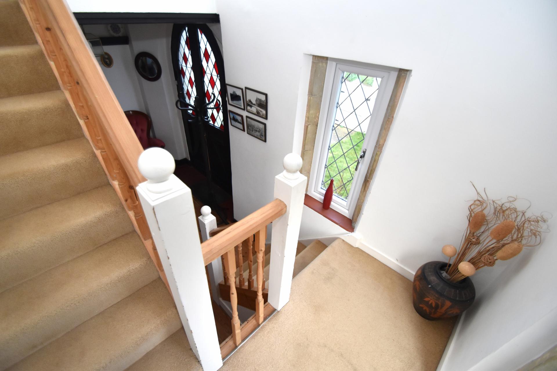 Reception Hall 15' 9" x 6' 9" (4.8m x 2.06m) (Front & Side Aspect) Carpetd staircase to the first floor with cupboard under, telephone point, plate rack, stipped pine floor boards,