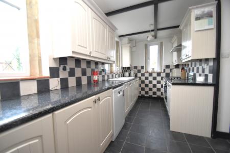 Kitchen/Dining Room 19' 3" x 10' 4" (5.87m x 3.15m) 6' 9" minimum (Front & Side Aspect) Fitted with an extensive range of units comprising 1.5 bowled single drainer sink unit with cupboards under, Further base cupboards and drawer units with work tops over, inset 4 ring electric hob and built under electric oven. tiled splash backs, matching wall cupboards to include extractor hood, radiator, tiled floor, door to:-