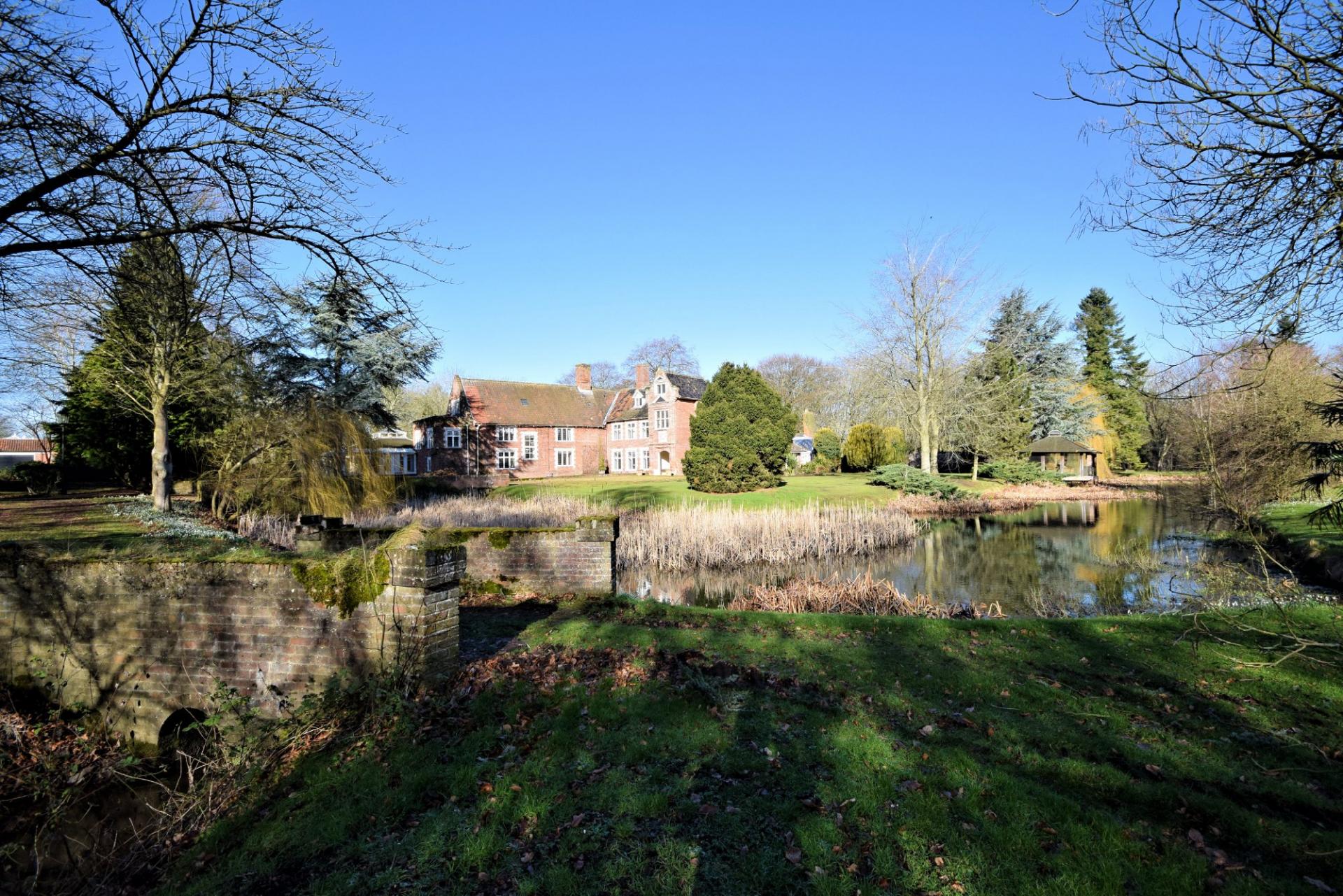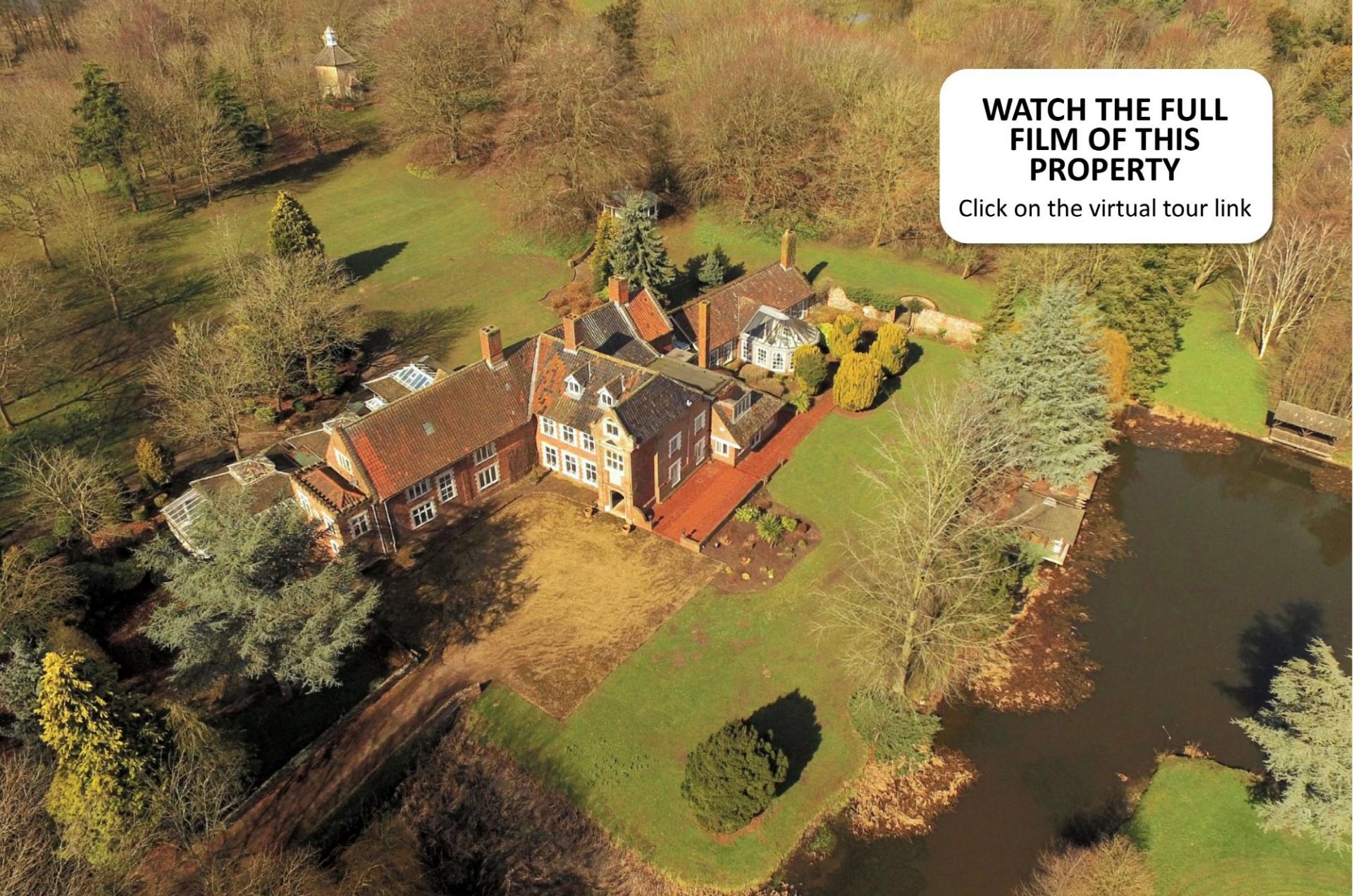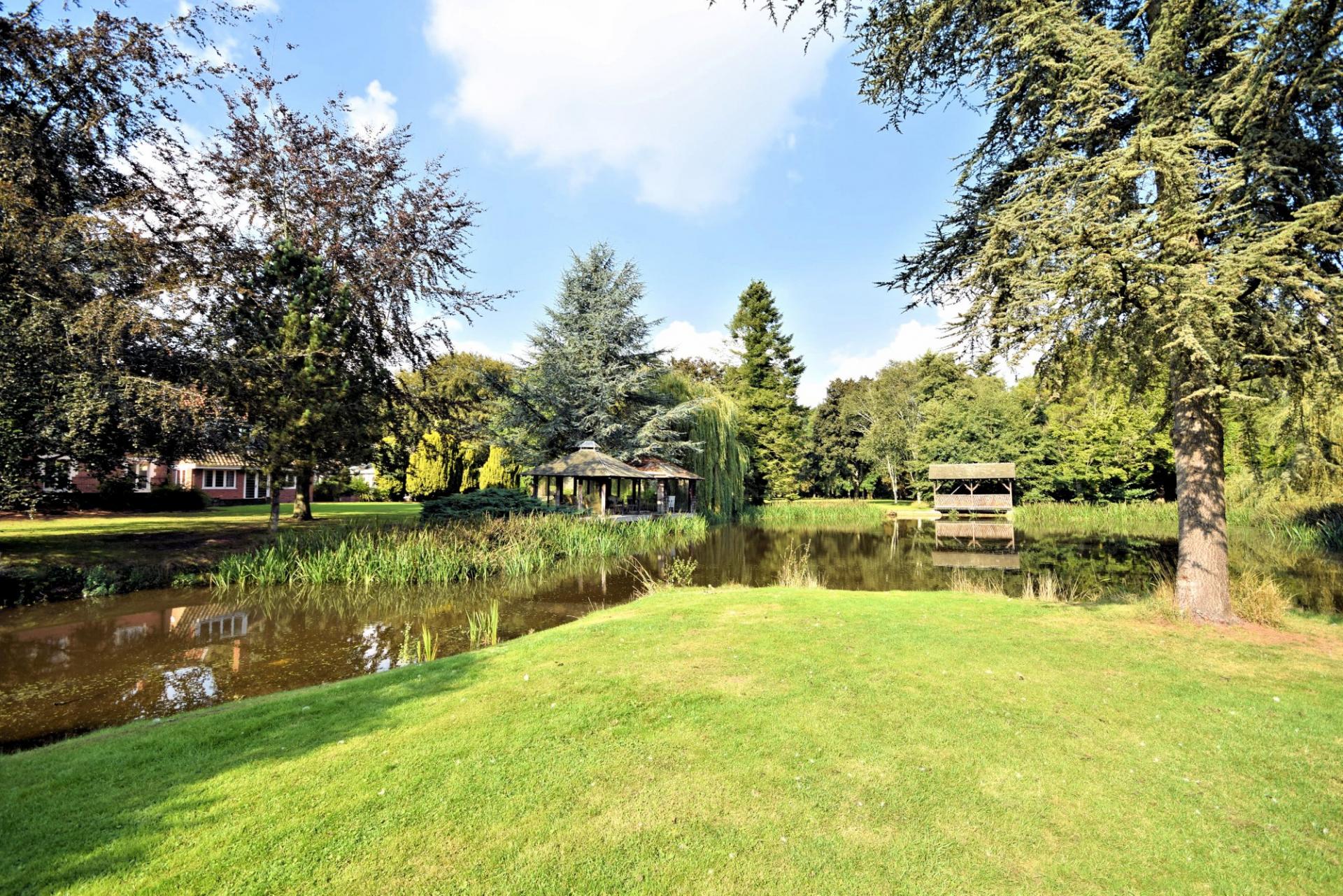 Situated in a beautiful parkland style settings, the grounds are a fabulous feature of this property. Extending to approximately 15 acres (sts), the grounds comprise an impressive wrought iron entrance that leads on to a sweeping gravelled drive. To the front there is a lake with a covered seating area, sweeping lawns, mature trees, a charming Folly and access to the River Wensum and fine views of the Wensum Valley.