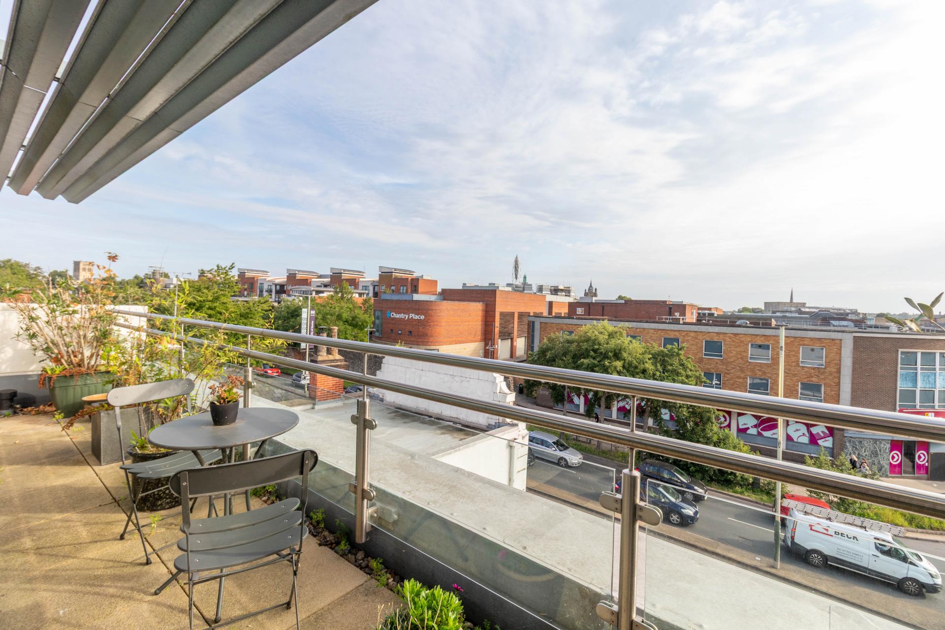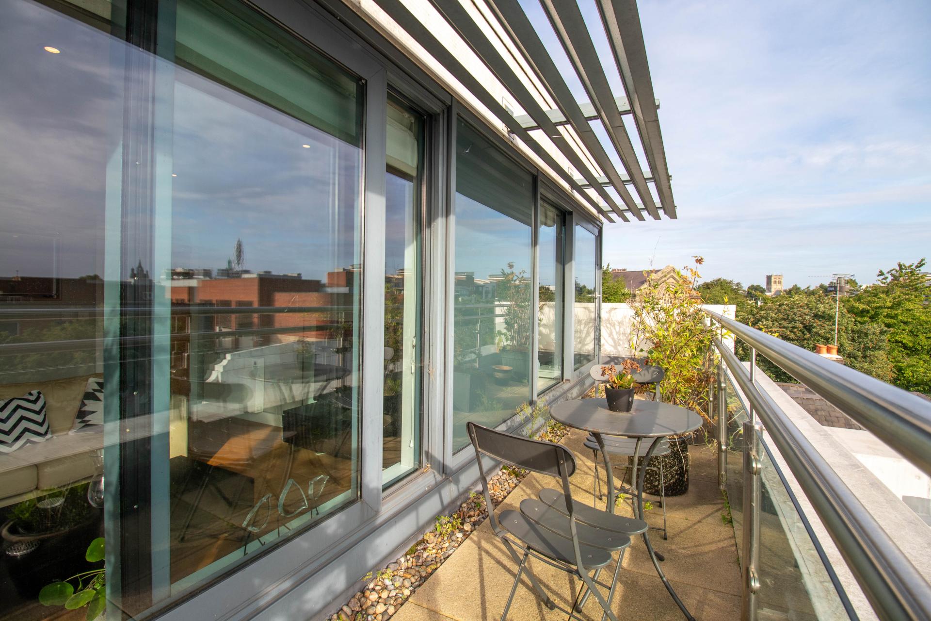 - Large Private Balcony With City Skyline Views.