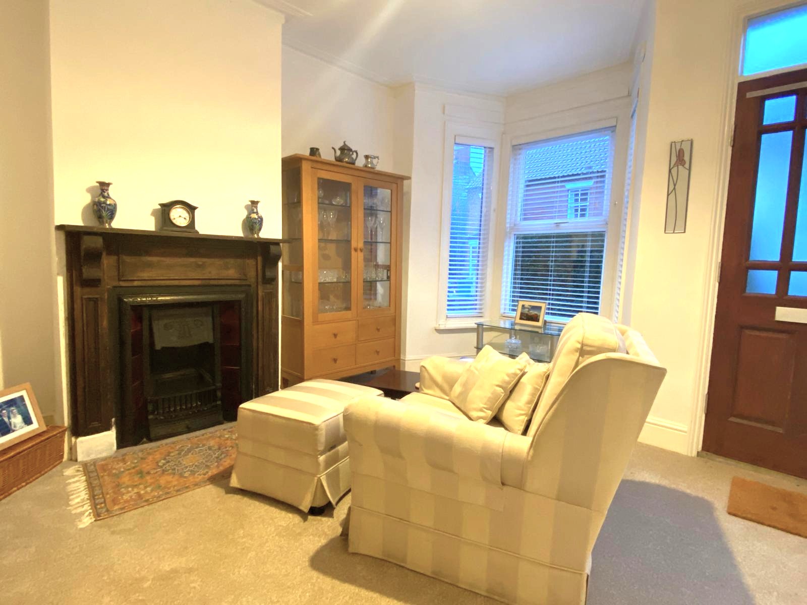 Sitting Room 11' 5" x 13' 10" (3.48m x 4.22m) into bay Original fire place with timber surround, inset and tiled splays, uPVC sealed unit double glazed window, stripped pine doors.