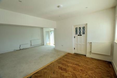 ENTRANCE HALL Coir matting, radiator, wooden parquet flooring and door to open-plan living area.