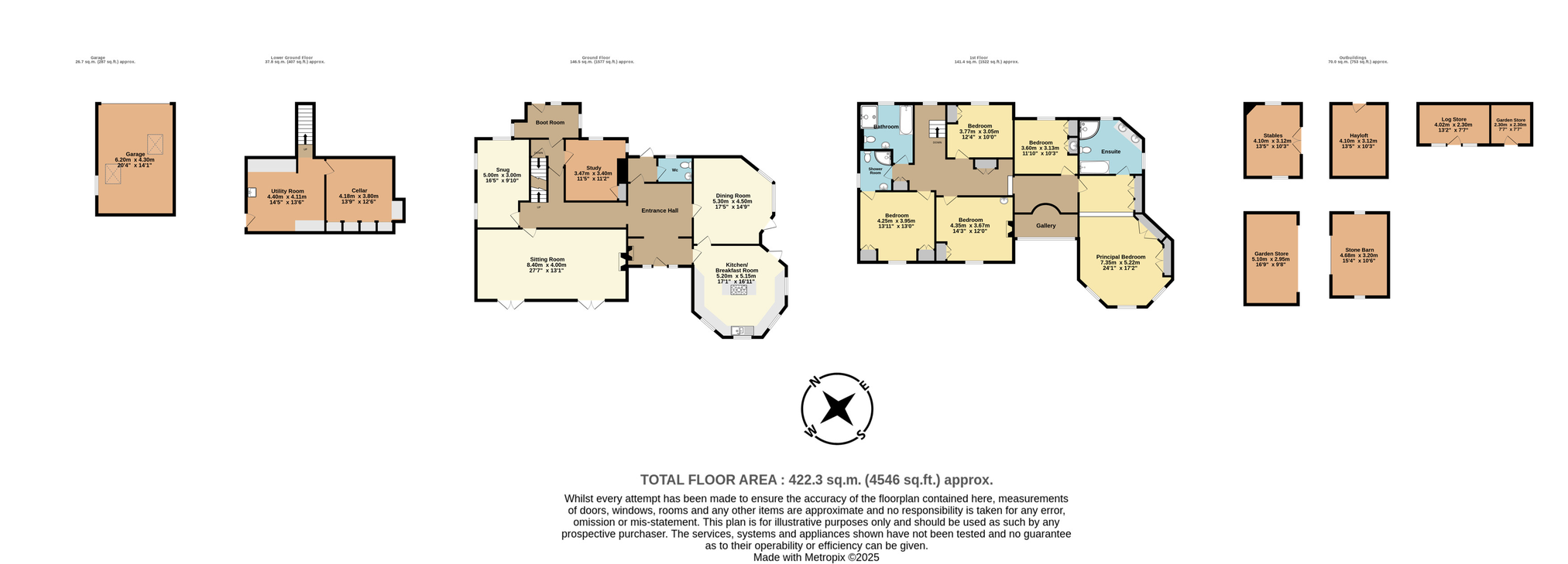 - Five Bedrooms: Principal suite with dressing room and en suite, guest suite, plus three further bedrooms and family bathroom.