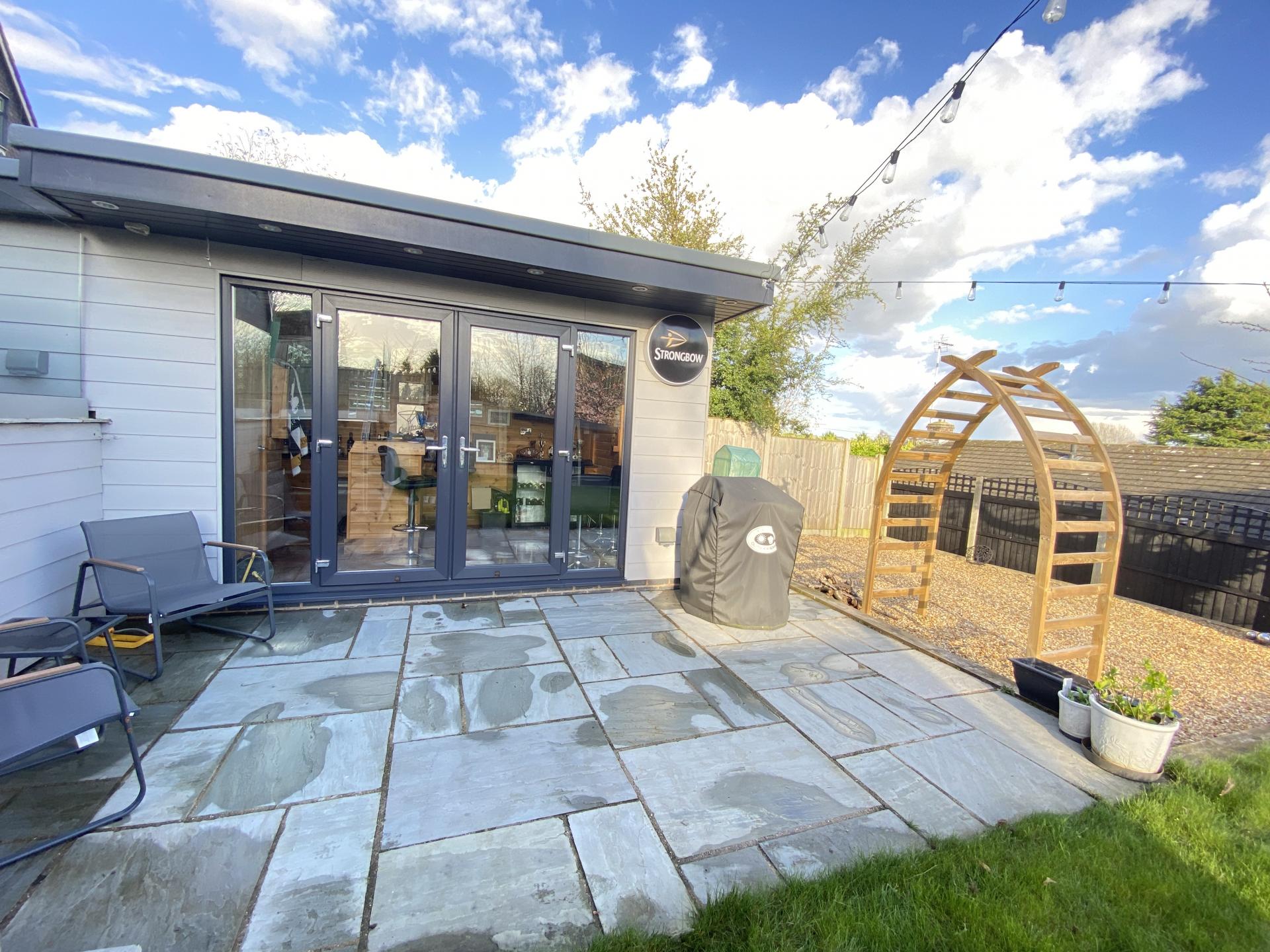 DESCRIPTION Located in the heart of the village, this beautifully renovated detached home offers a wonderful blend of contemporary design and easy, everyday comfort. Thoughtfully modernised from top to bottom - including a new roof, full rewire, new heating system, and stylish kitchen and bathrooms - the property is perfectly suited to anyone seeking a home that feels both fresh and refined. Arranged over two floors, the home opens into a welcoming entrance hall with a built-in cloaks cupboard and sleek tiled flooring with underfloor heating that flows through to the contemporary kitchen/breakfast room. This bright, social space features quartz worktops, quality integrated appliances and access to a practical utility/boiler room with plumbing for a washing machine. The generous living room and separate study/dining room both open onto an elevated, enclosed balcony with a stylish glass balustrade - a perfect spot to unwind or entertain while overlooking the garden. A fourth bedroom and chic shower room complete the ground floor, offering ideal flexibility for guests or home working. Upstairs, a beautifully presented family bathroom with a roll-top bath serves three further bedrooms. Two feature charming vaulted ceilings, while the principal bedroom boasts an en-suite shower room and a glass Juliet balcony framing lovely views. The gardens to the front and rear have been thoughtfully landscaped, complementing the block-paved driveway with space for three cars and access to the detached brick-built garage. At the rear, a purpose-built garden bar with its own WC offers an exceptional additional space - perfect for entertaining or converting into a stylish home office if desired. This is a home that seamlessly blends modern comfort with village living, offering practicality and contemporary style in equal measure.