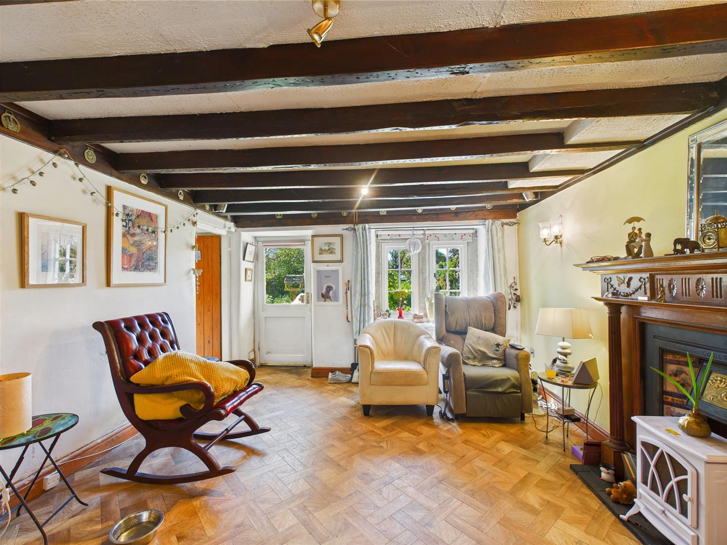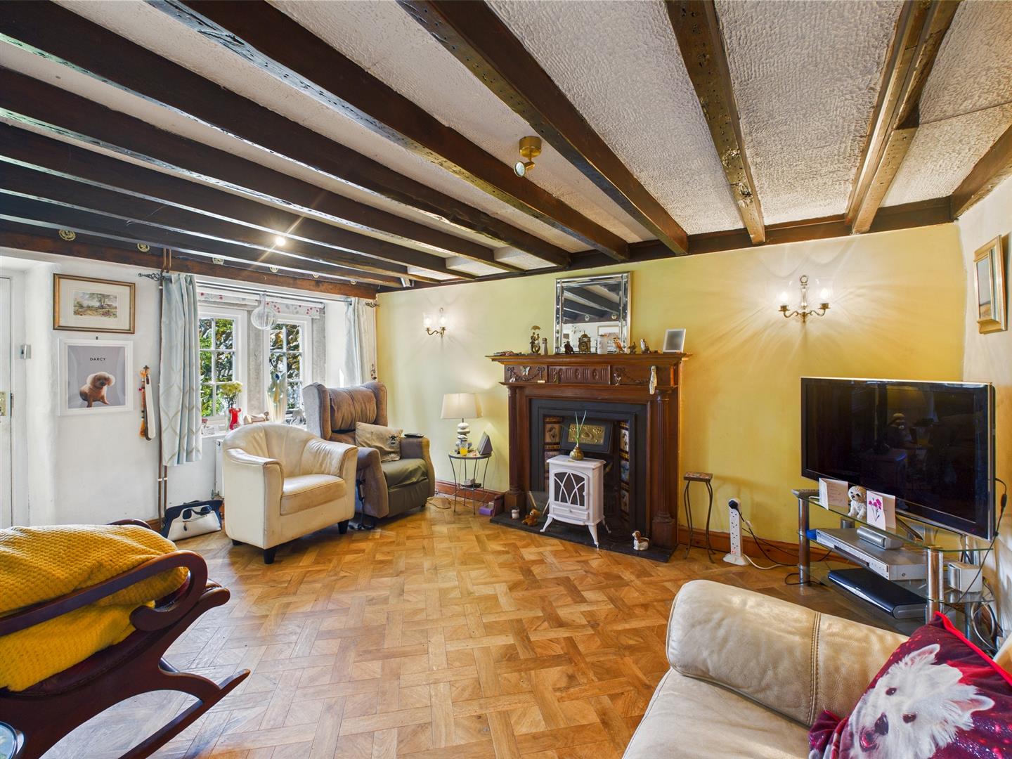 Lounge - 4.55m x 3.56m (14'11" x 11'8") - With wooden flooring throughout, a feature cast iron fireplace with tiled inset and open grate, decorative wooden fireplace surround and mantelpiece over. With double radiator, beamed ceiling, two wall light points, T.V. aerial point and two uPVC sealed unit double glazed stone mullion windows looking to the front garden. Sealed unit double glazed door leading to the rear garden.