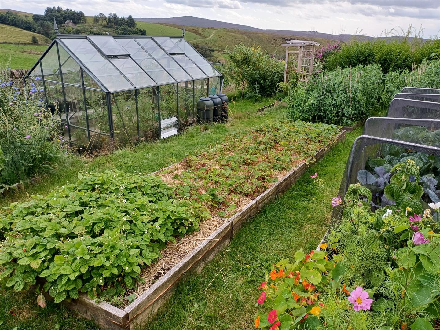 Outside - Axe Edge Green Farm is set in ten acres of land with stunning panoramic views to the open countryside. The property benefits from off-road parking for several vehicles and has a substantial double garage/workshop. There are numerous paddocks, field shelters, a Mediterranean garden as well as a walled vegetable garden, an orchard, greenhouse, polytunnel, cold frame and raised beds. Axe Edge Green Farm offers a fabulous lifestyle, which can be self-sufficient in an idyllic location.
