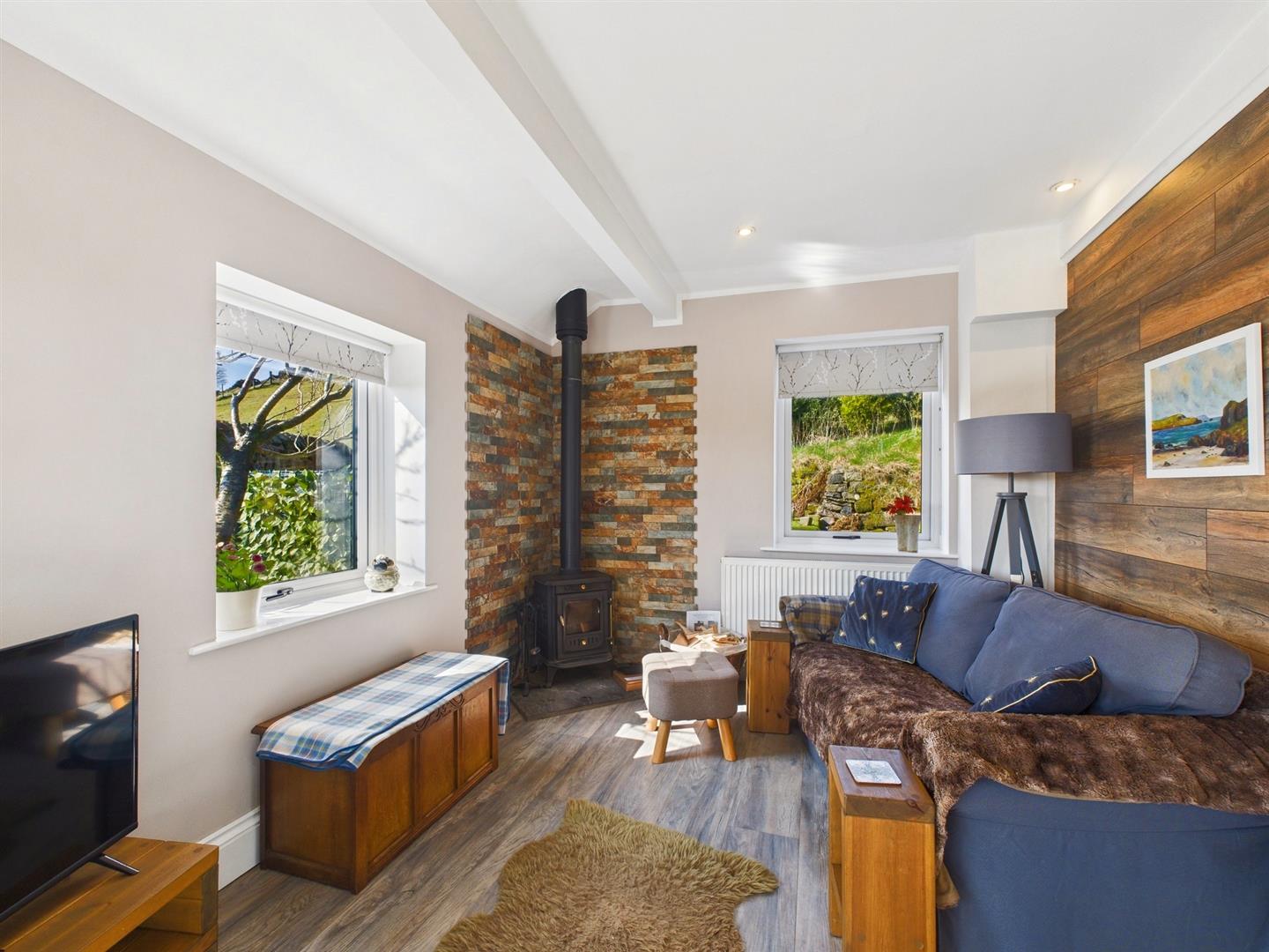 The View - Lounge Area - With cast iron log burning stove, T.V. aerial point, double radiator and two uPVC sealed unit double glazed windows with panoramic views to the countryside.