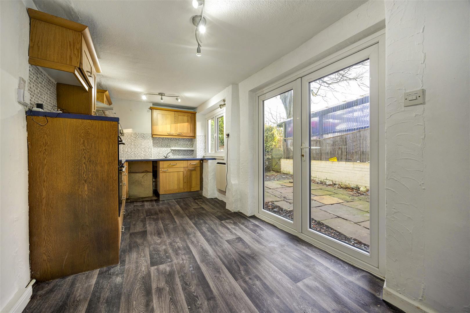 Kitchen - Tile-effect lino flooring, electric radiator, range of wall and base units, 1.5 drainer sink, space for dishwasher, double oven, gas hob with extractor hood over, UPVC double glazed window and patio doors to rear aspect.