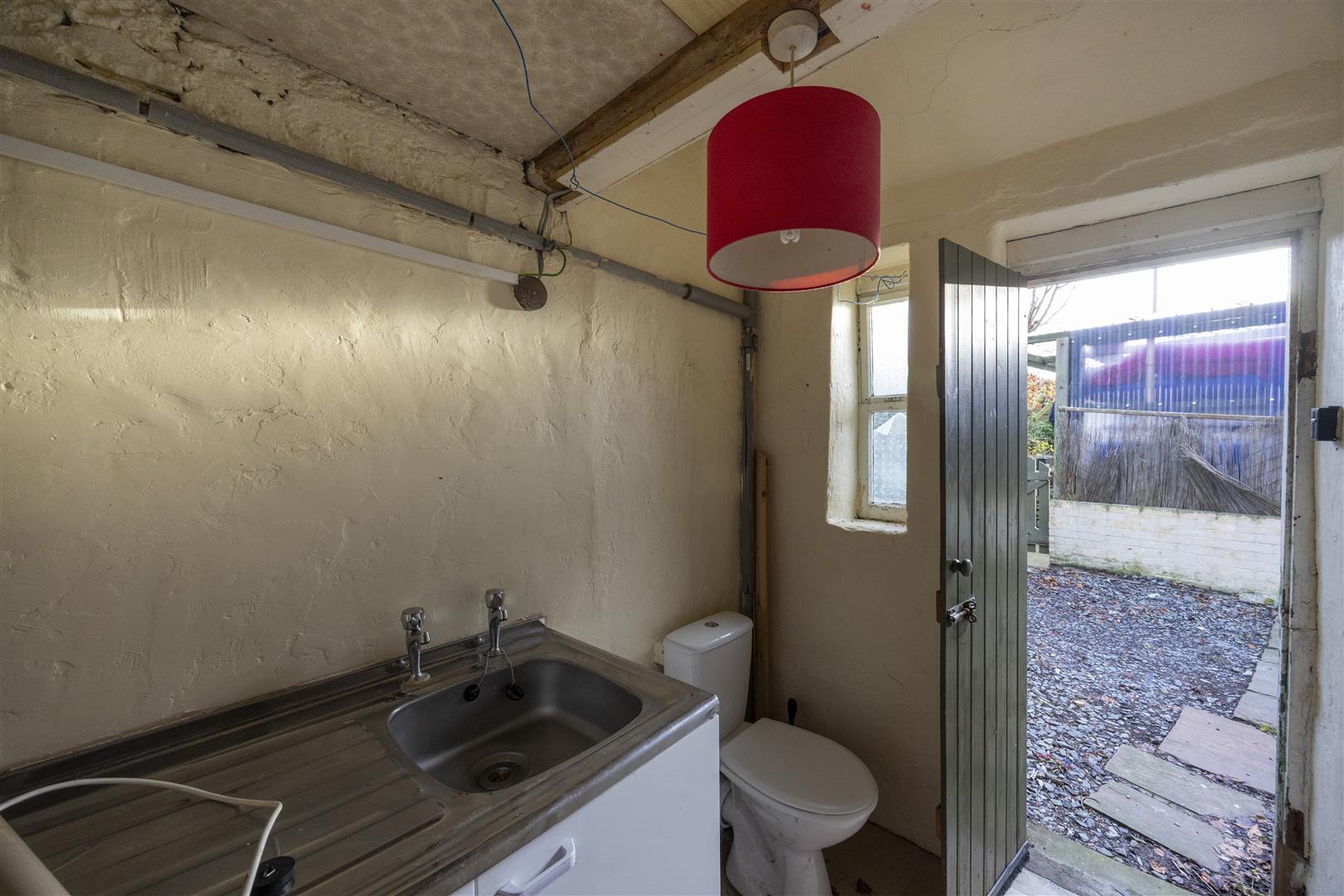 External Utility - Space for washing machine and dryer, base units, stainless steel sink, toilet, boiler, window and timber door to rear garden.