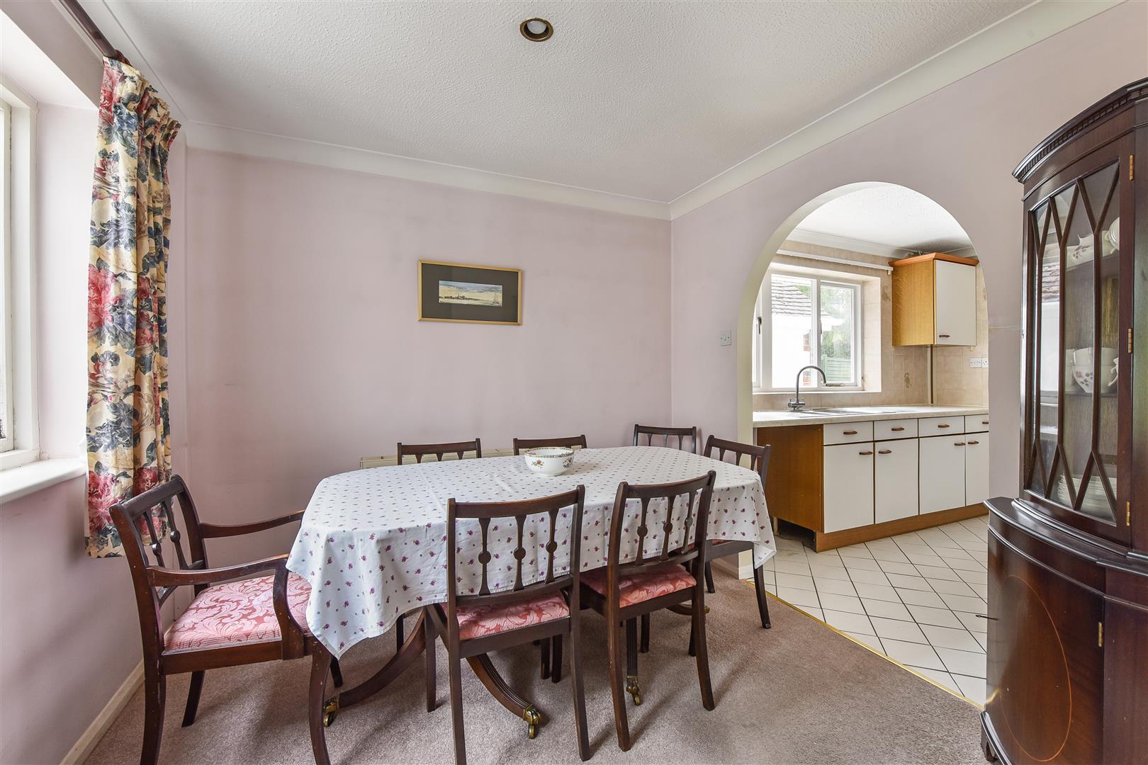 Dining Room: (SE) View over the rear garden. Arch through to the kitchen.