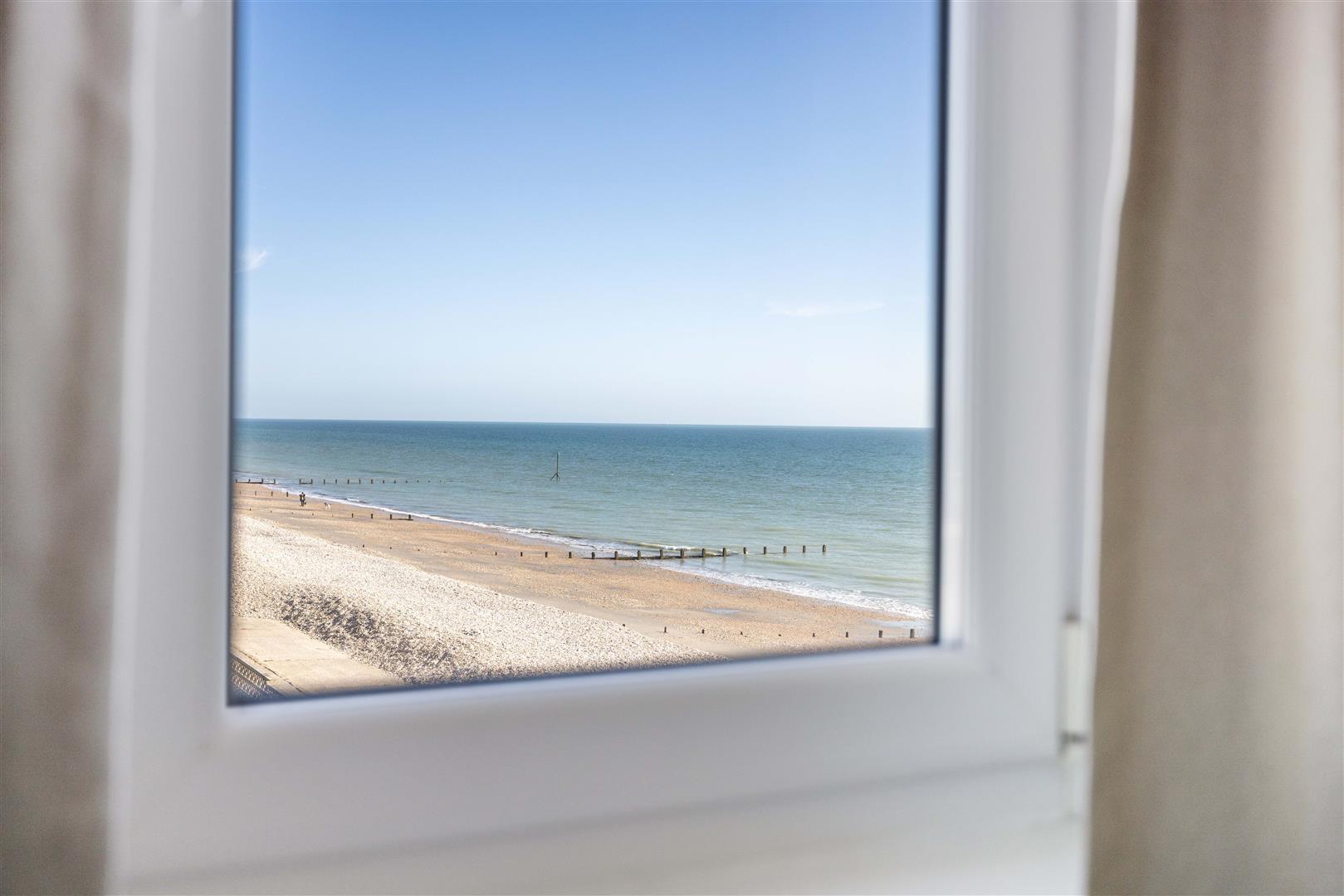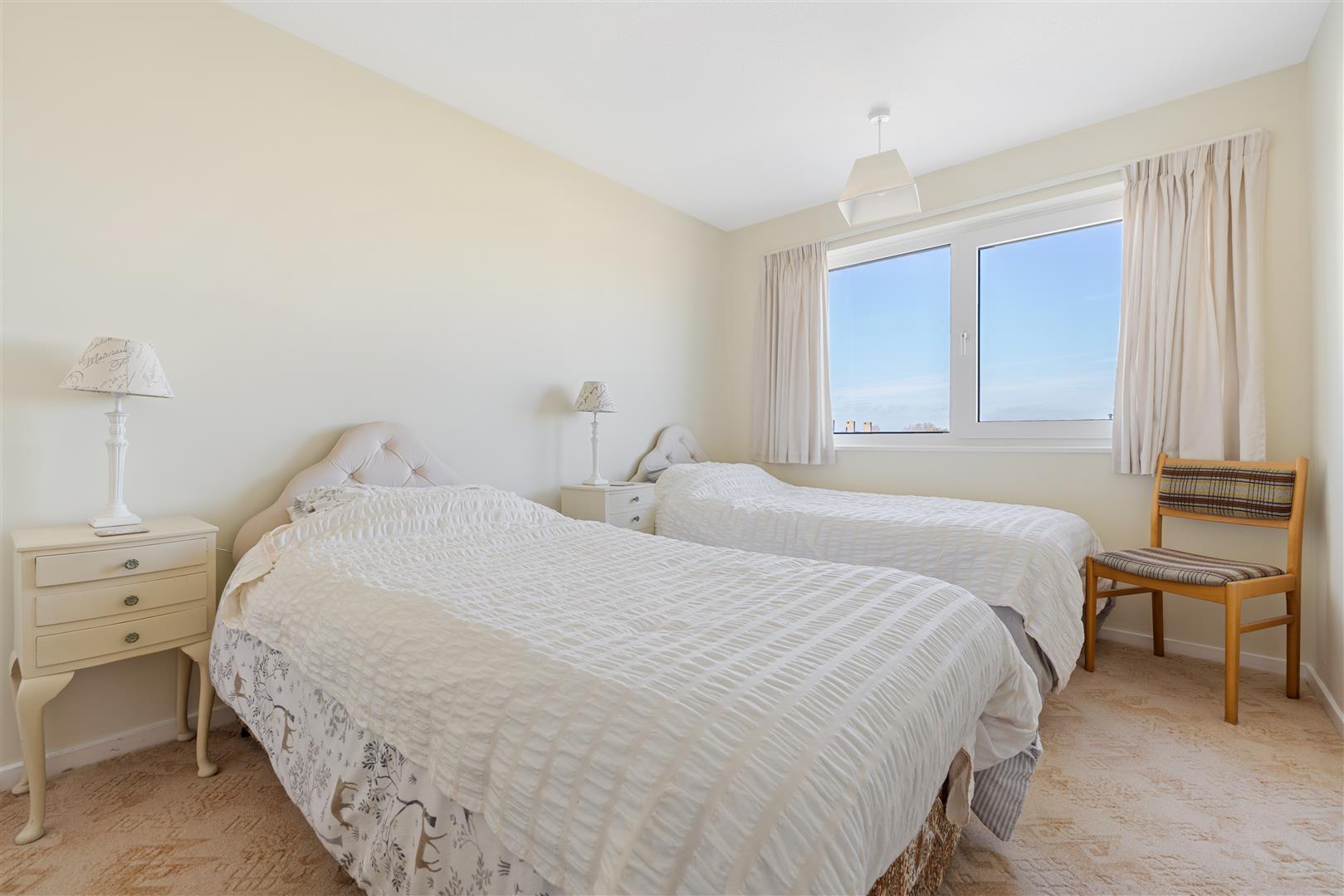 Bedroom One: (N and E) Distant views to The South Downs and along the coast to Selsey Bill. Triple built-in double wardrobe. 'Roint' thermostatically controlled electric radiator.
