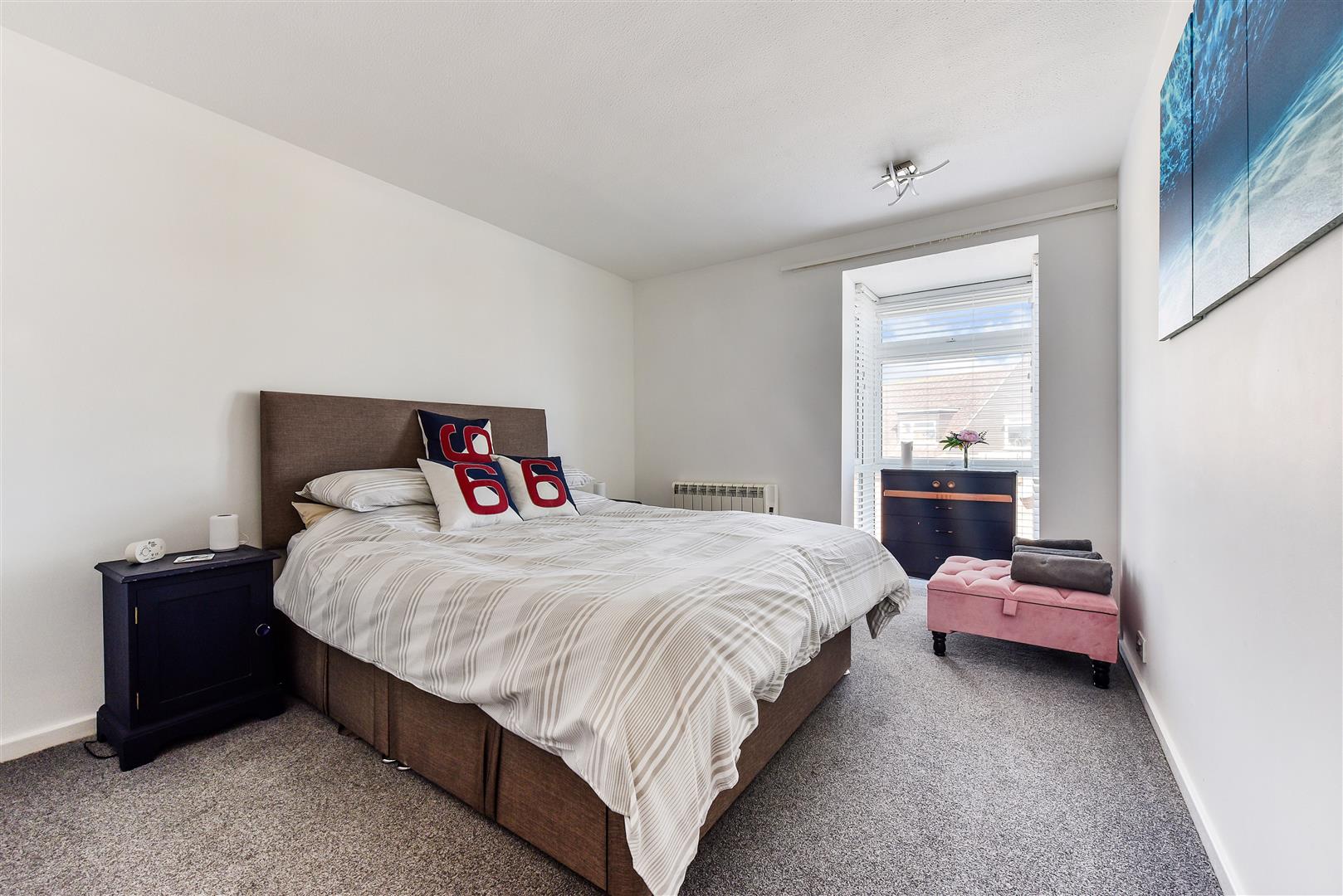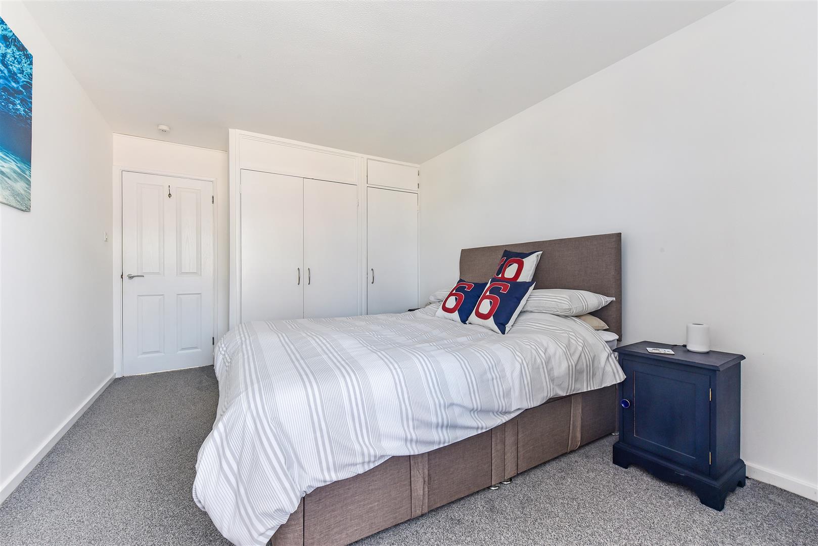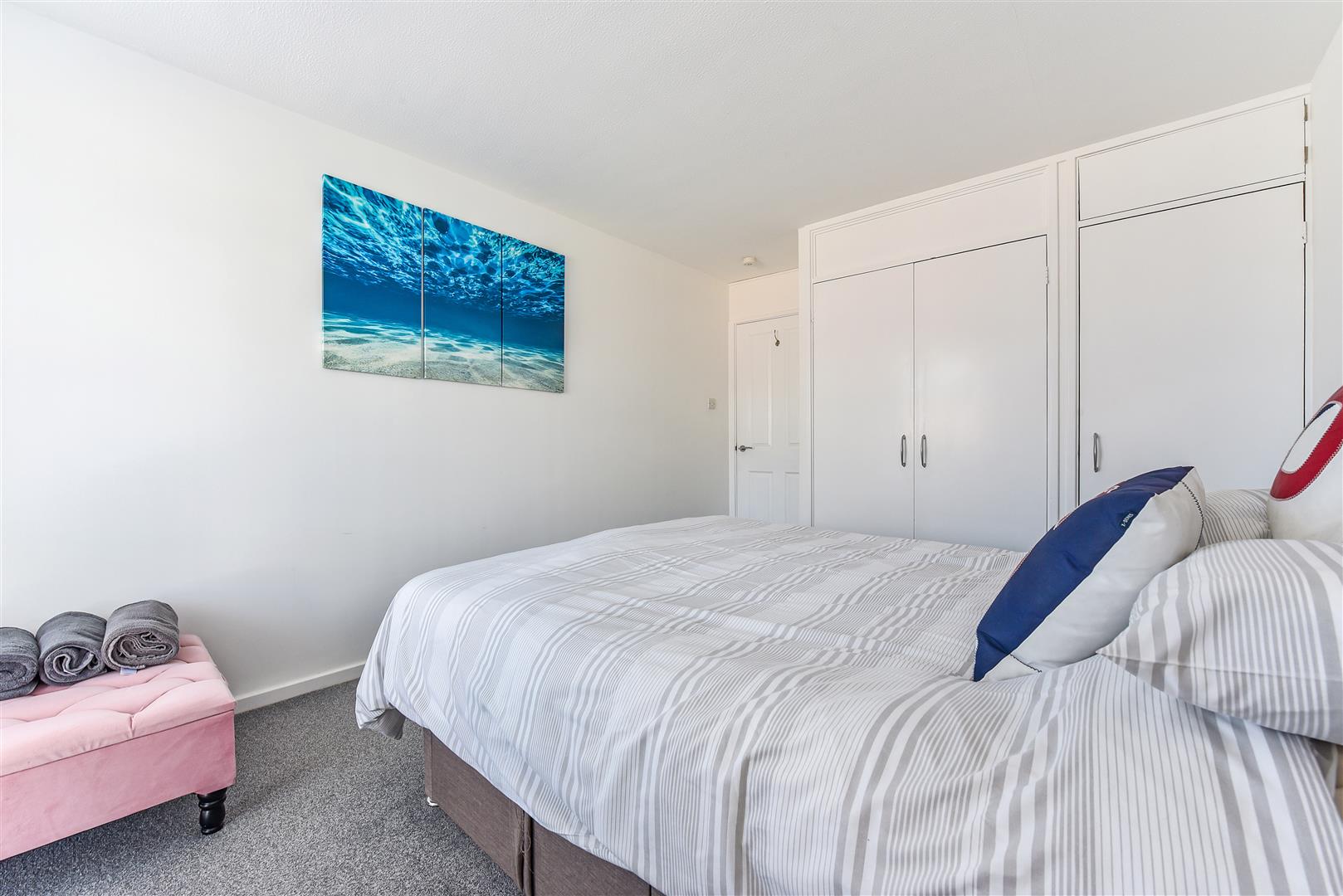 BEDROOM ONE: (E) Built in double wardrobe cupboard with additional single airing cupboard housing insulated hot water with immersion heater. Thermostatically controlled electric heater.