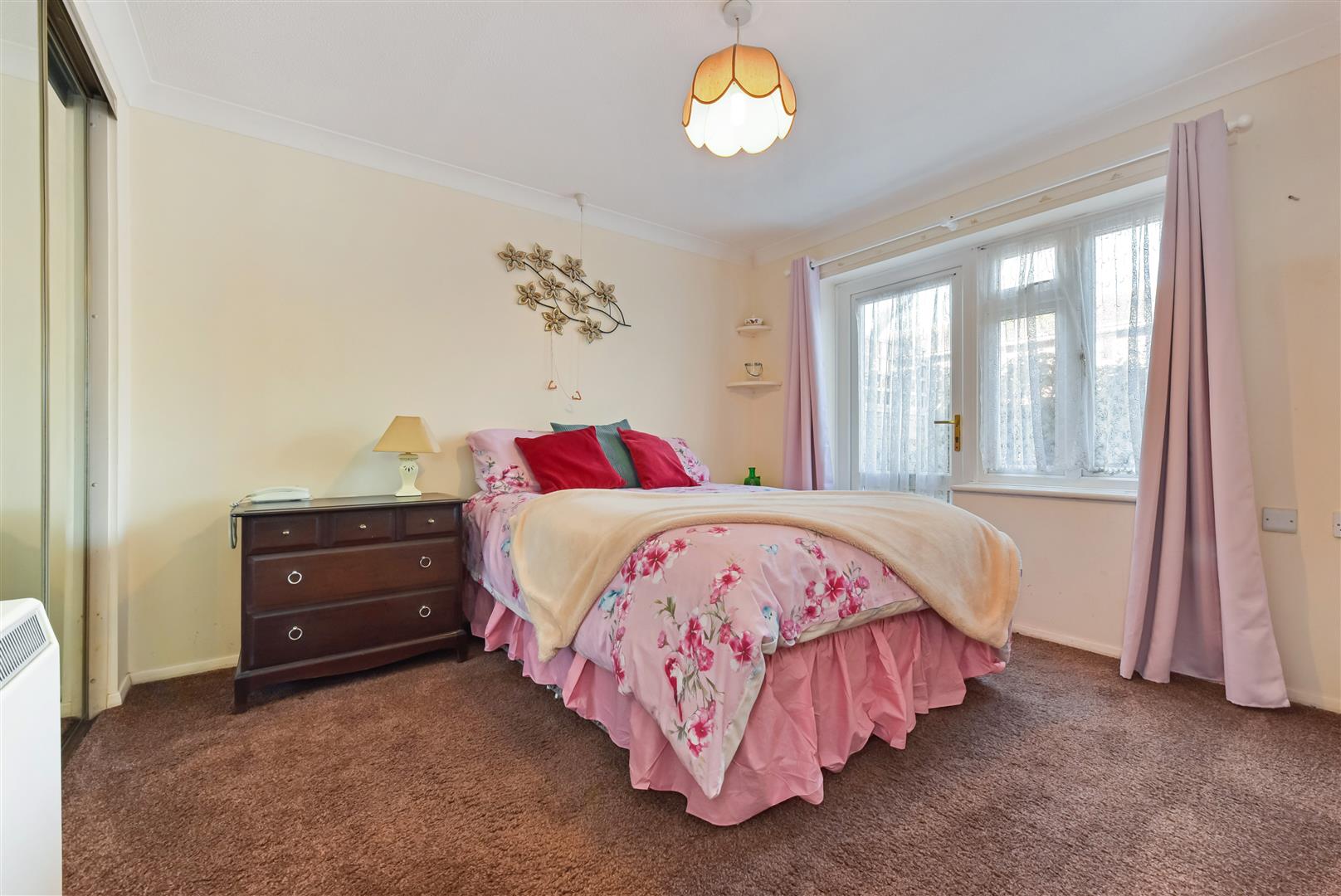 Bedroom One: (N) Door leading out to the rear garden. Built in storage unit with space for television, double built in wardrobe cupboard with mirrored fronted doors. night storage heater,