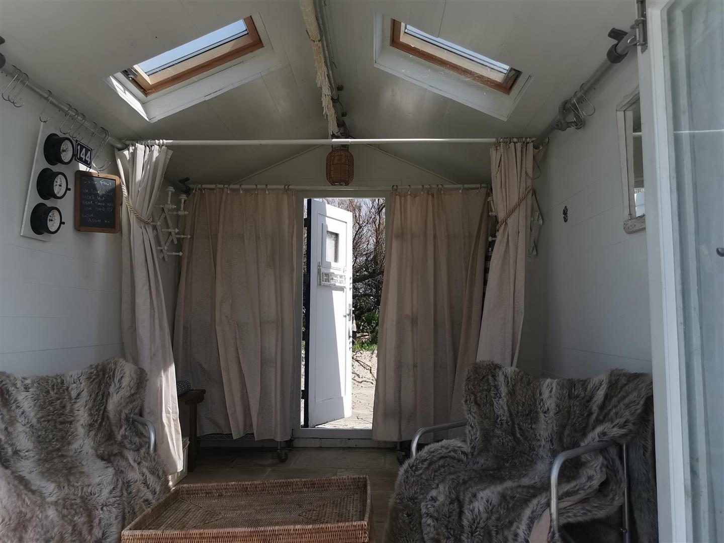 Internally, there are three poles running the length of the hut suitable for hanging lamps etc and curtain poles allowing you to create two separate sections for changing.