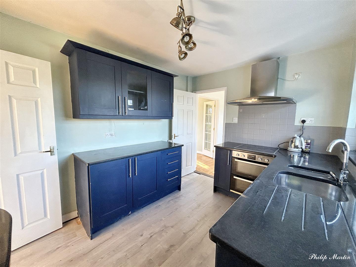 Kitchen - 3.43m x 2.59m - Fitted with a range of eye and base level units with a granite work top over, small granite breakfast bar, one and a half bowl stainless steel inset sink unit, one with waste disposal. Built in Neff double electric oven and grill with a four ring halogen hob and extractor fan over. Plumbing for dishwasher, inset spot lights, newly fitted flooring and connecting door back in to hall.