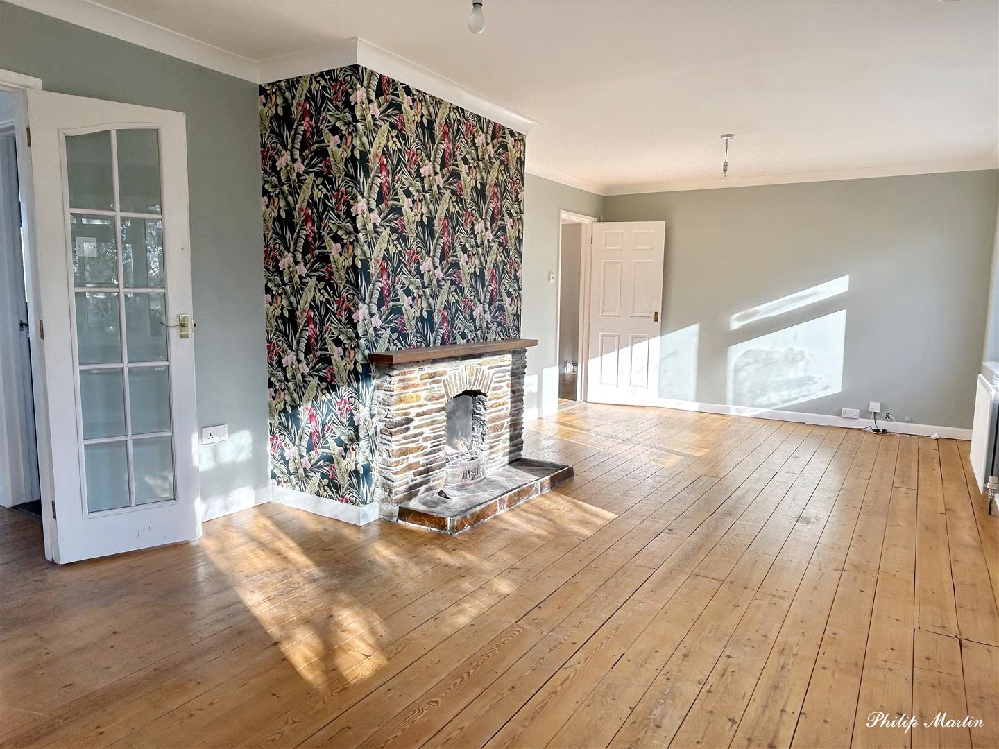 Sitting Room - 7.16m x 3.53m - An extremely light and airy room with two radiators, local stone open fireplace with matching hearth and wood mantle over. Two large windows overlooking the front garden, double doors to dining room and direct access through to:-