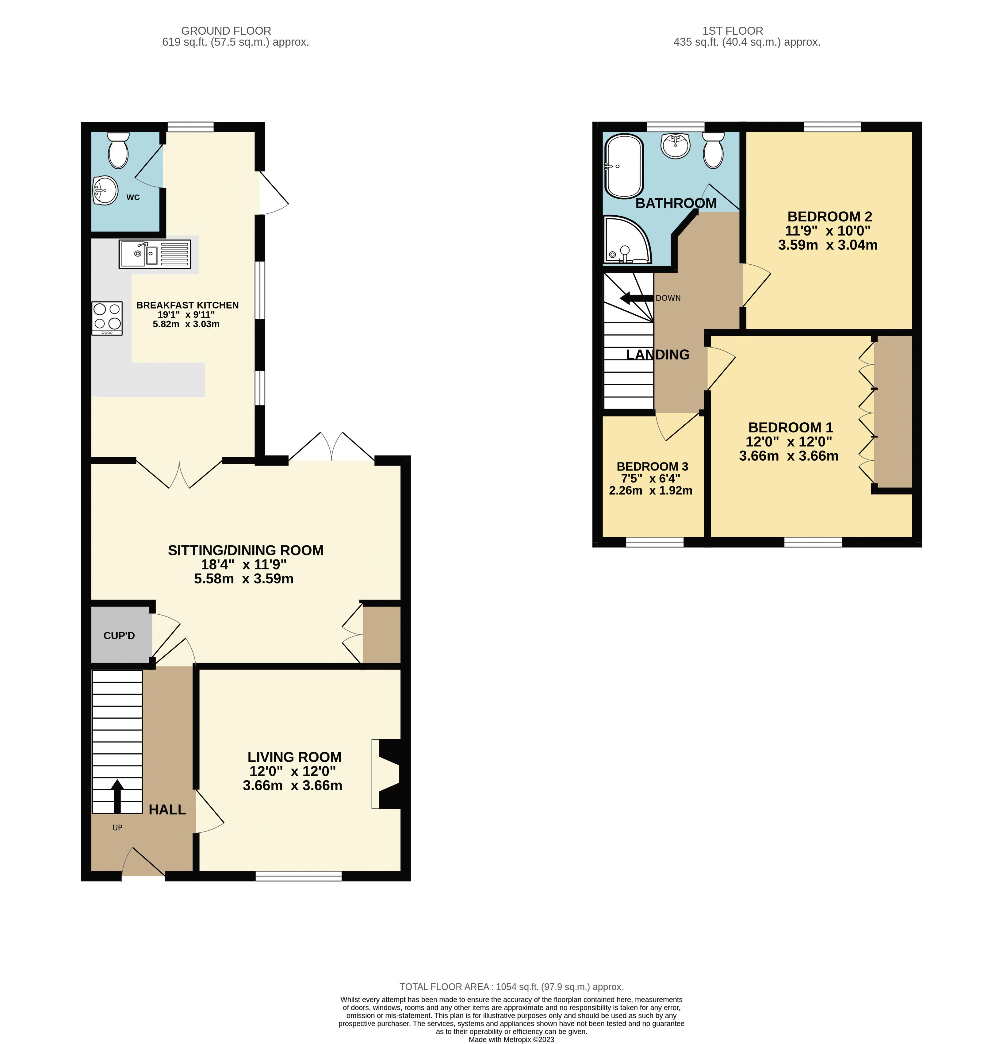 18' 4'' x 11' 9'' (5.58m x 3.59m)