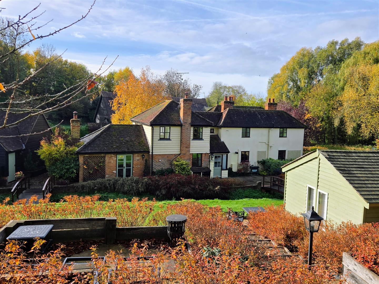 Imaginatively enhanced by the current owners over the years, there are various attractive patio areas creating great entertaining space, with areas of lawn and wild flowers, fruit trees, mature shrubs, flower and shrub beds. There is a fenced copse to the rear of the garden and various outbuildings: