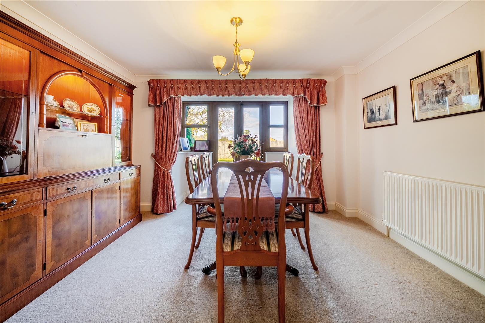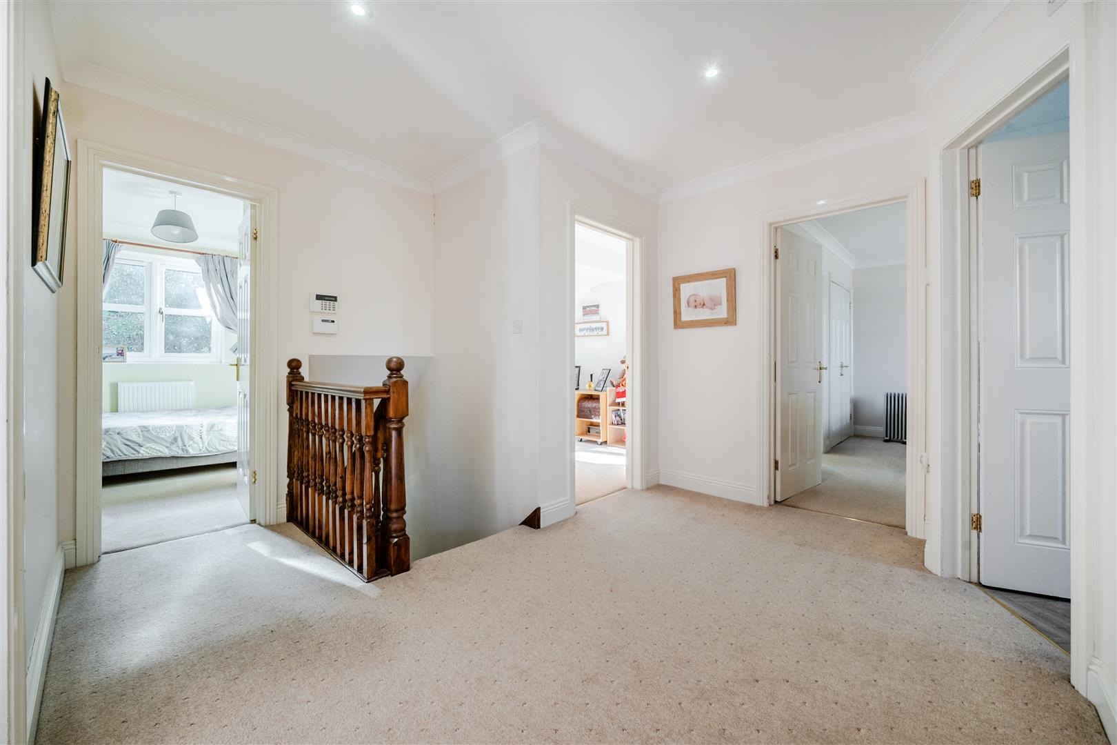 The property is found along a quiet semi-rural lane flanked on one side by beautiful forestry and is approached via a large gravel driveway offering parking for numerous cars, in addition to a double garage. On entering the hallway the feeling of space is immediately apparent drawing you in the heart of the home leading through glazed double doors into the well-proportioned Sitting Room which centres on a stone fireplace and with doors leading to the garden; adjacent to this space is the Dining Room which is also a good size with doors to outside. A Study is positioned to the front of the house overlooking the beautiful woodland. The Kitchen has been fitted with ample wooden cupboards and features a two-door oil fired Aga as well as an island with a breakfast bar for informal dining; a range of additional appliances are included. There is a Utility Room leading off the Kitchen with space for appliances and a door to both the garage and to the garden. This family home has a later double storey extension on one side built in 2018 which provides a flexible space for use as a potential annexe or could be utilised on the first floor as a master suite. On the first floor is a large landing leading to five double bedrooms which are complimented by two ensuites and a family bathroom; fitted wardrobe cupboards can be found in Bedrooms 1, 4 and 5. The back garden is low maintenance, mainly laid to lawn and flanked on either side by mature trees providing natural screening and with a brick outbuilding for storage.