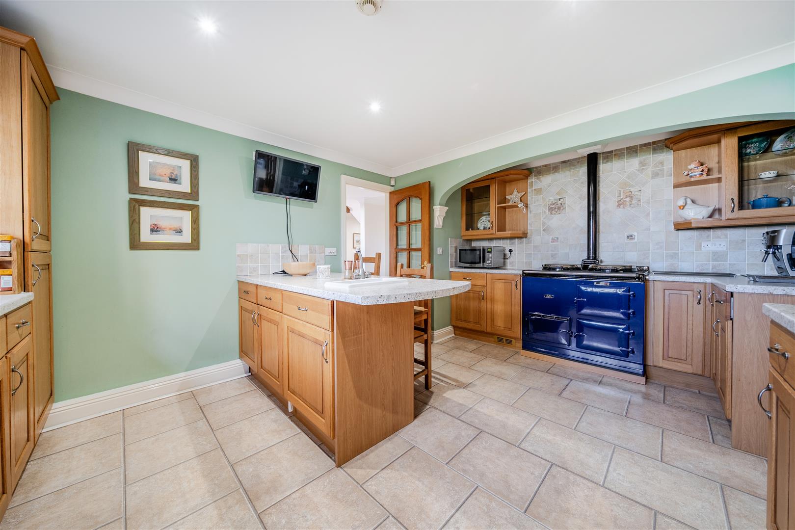 Zoned alarm system; Coat cupboard; Kitchen appliances include 2 ring oil fired AGA, 4 ring electric hob, oven and grill, Kenwood dishwasher and integrated fridge/freezer; Utility Room with space for washing machine and tumble dryer; Grant oil fired boiler with high pressurised water tank; Part boarded loft with light; Garage with fully boarded loft.
