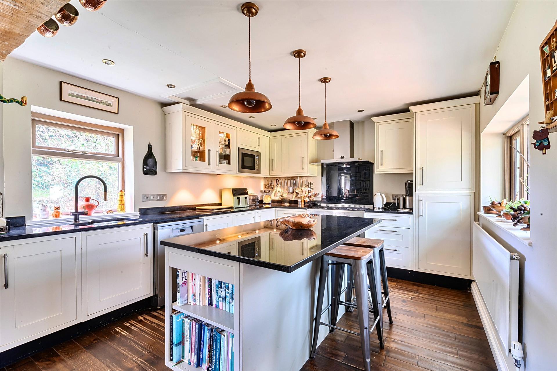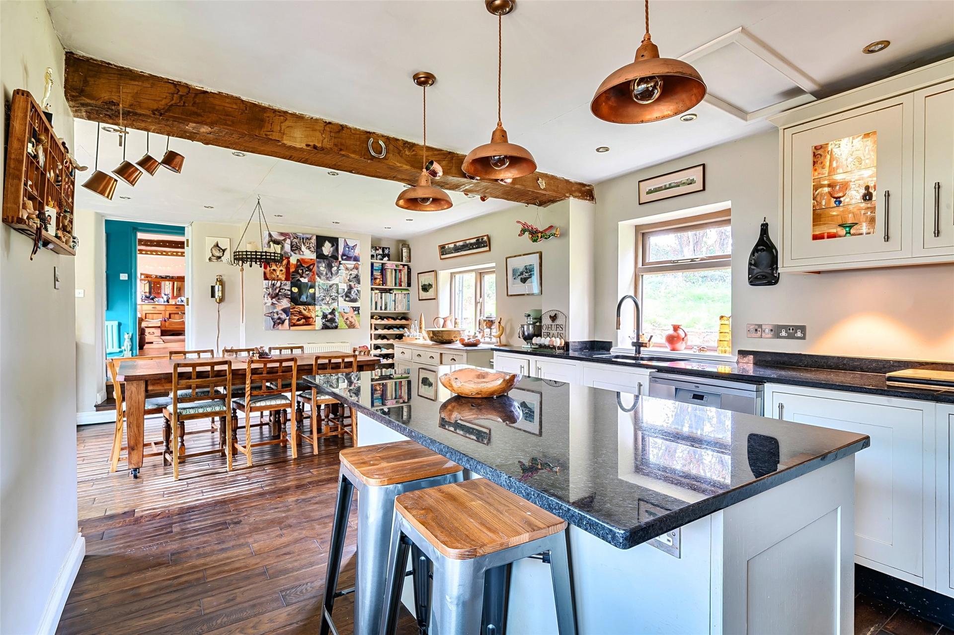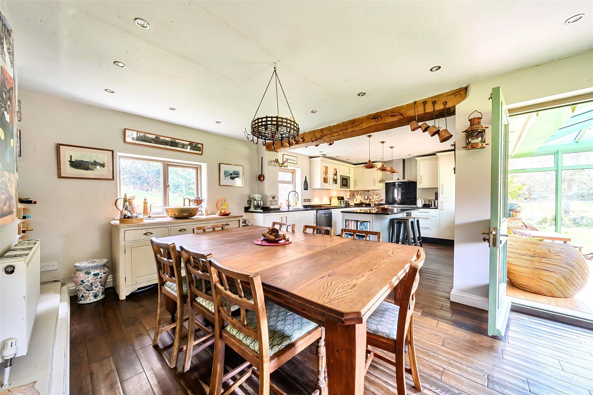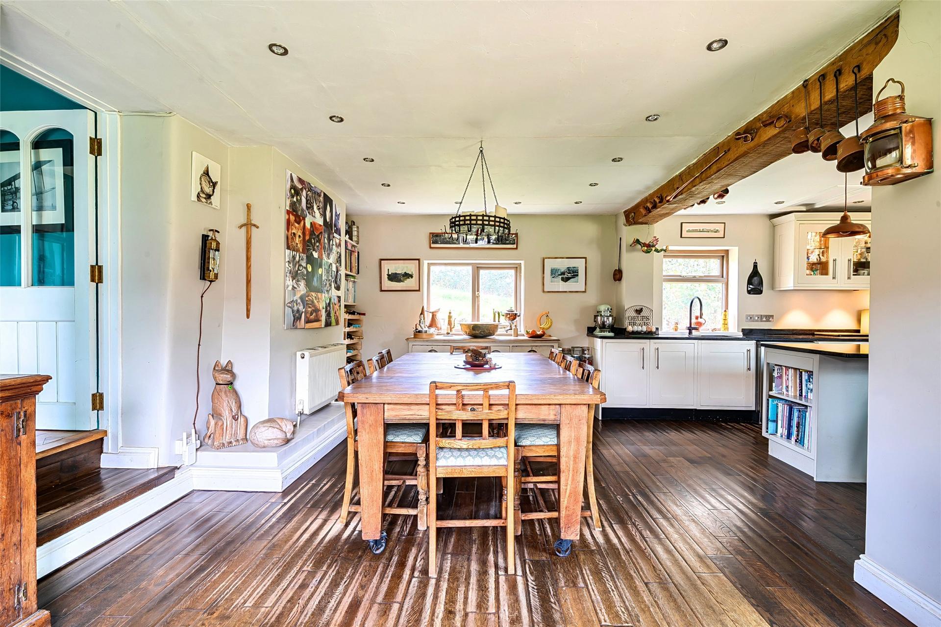 The property has a welcoming hall with access to a ground floor shower room and WC. There is a comfortable dual aspect sitting room with log burner and parquet flooring. The kitchen has been fitted to a high standard with an extensive range of wall and base units and island with granite worktops, dishwasher, five ring range cooker and oven. The current owners have added a smart sun room to allow them to enjoy the garden all year round.