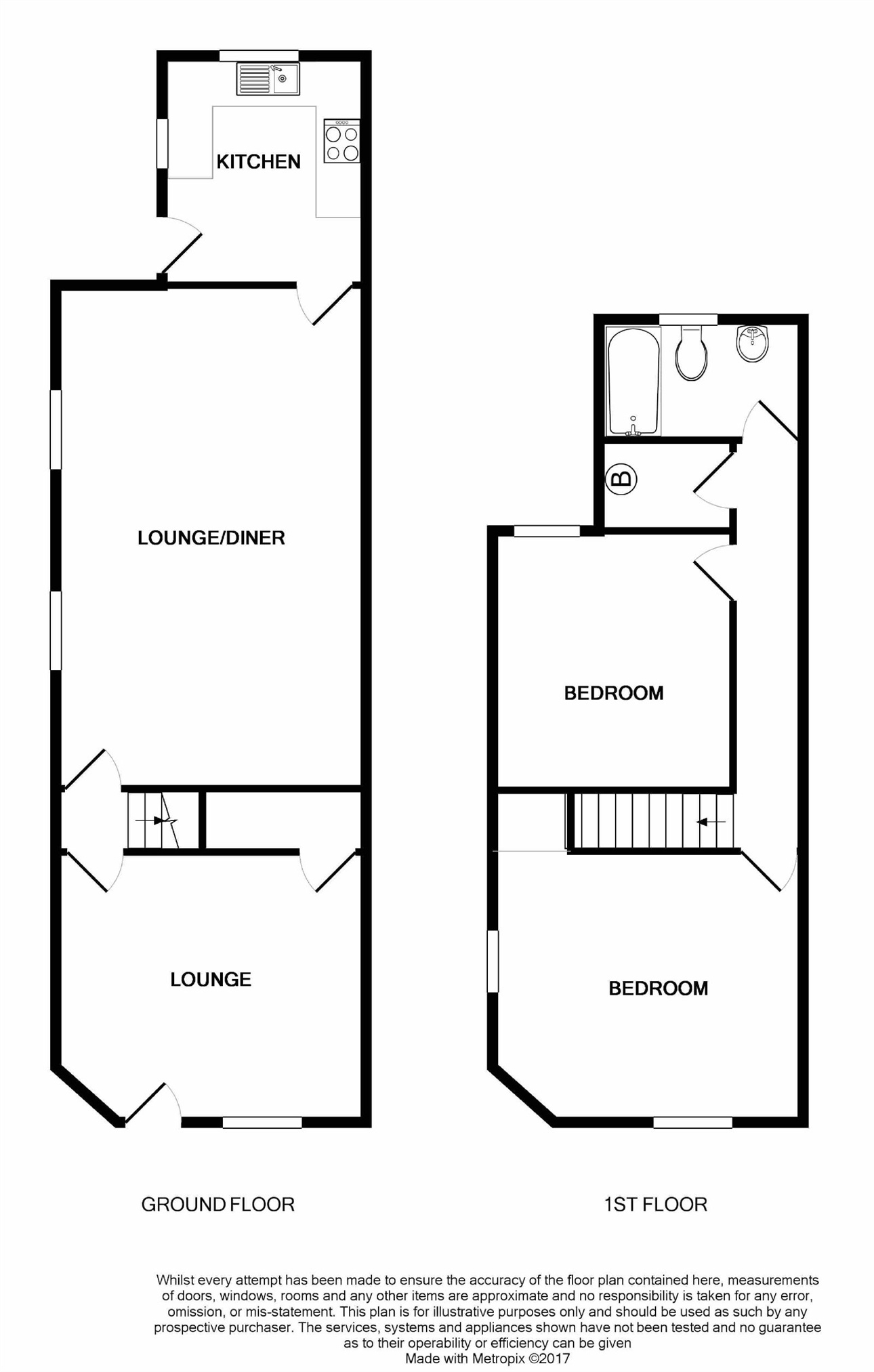 The accommodation briefly comprises: Front lounge, inner hall, large rear lounge/dining room and kitchen. Landing, two double bedrooms and bathroom. Garage, forecourt and rear yard. PC rating D.