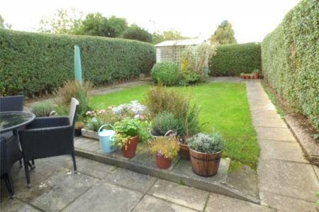Foregarden and side pedestrian access leading to the good sized rear garden, which has a patio area, lawn and floral borders.