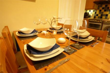 This spacious open plan dining kitchen is a particularly attractive feature of the home, having a single drainer stainless steel sink with mixer tap, fitted base unit, additional base cupboard with work surfaces over and fitted wall cupboards. Gas cooker point, plumbing for an automatic washing machine, central heating radiator, large useful built-in cupboard and upvc sealed unit double glazed window overlooking the rear garden.