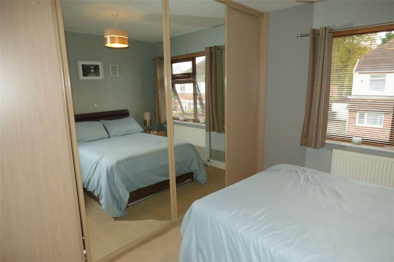 Having a range of fitted wardrobes with mirrored sliding doors, central heating radiator and upvc sealed unit double glazed window.