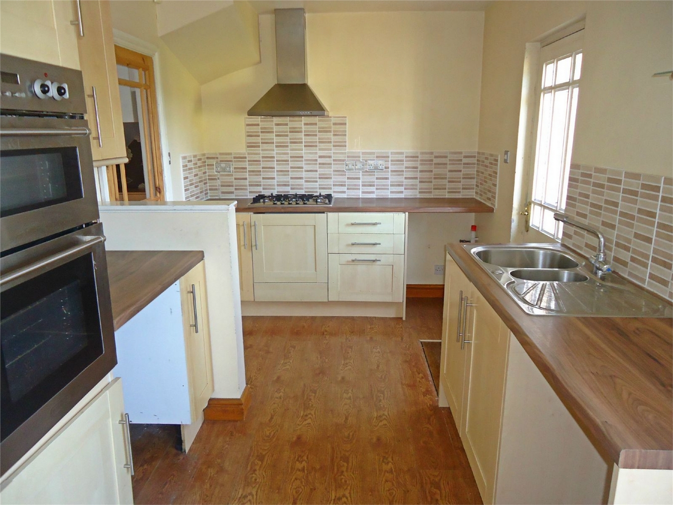 Having a one and a half bowl single drainer sink with mixer tap, fitted base unit, additional base cupboards with work surfaces over and fitted wall cupboards. Built-in oven and hob. Plumbing for an automatic washing machine, two central heating radiators, half glazed rear entrance door and upvc sealed unit double glazed window overlooking the garden.