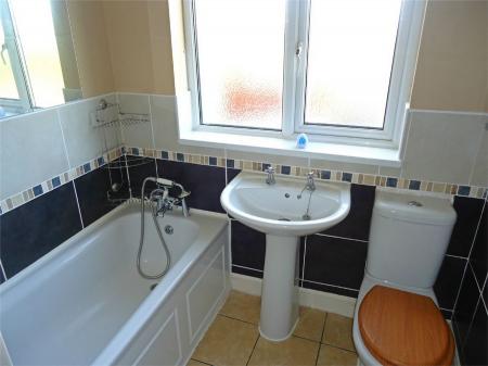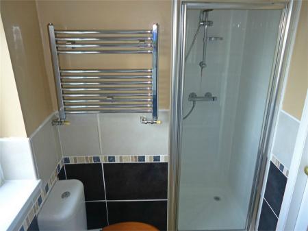 Being half tiled to the walls and having a white suite comprising a panelled bath with mixer tap and shower attachment, separate shower cubicle, pedestal wash hand basin and low level WC. Heated towel rail, tiled flooring and upvc sealed unit double glazed window.