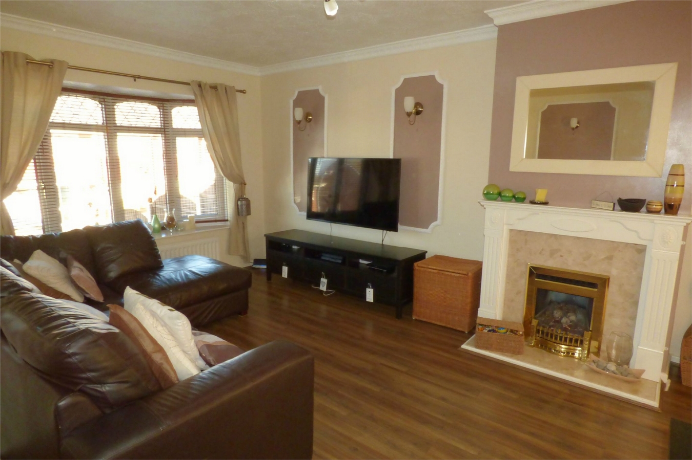 Having a feature fireplace with marble hearth and inset housing a natural coal effect living flame gas fire. Double central heating radiator, built-in cupboard, laminate wooden flooring and sealed unit double glazed window.