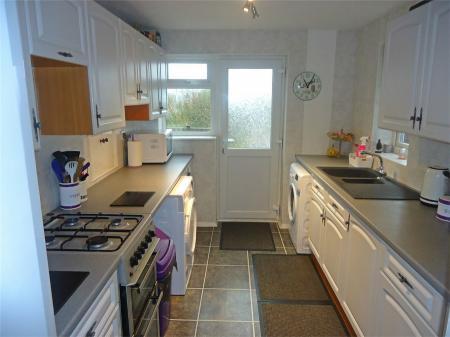 Having a one and a half bowl drainer sink with mixer tap, fitted base unit, additional base cupboards and drawers with work surfaces over and fitted wall cupboards. Gas cooker point, plumbing for an automatic washing machine and tumble dryer. Upvc sealed unit double glazed window and door to the rear garden.