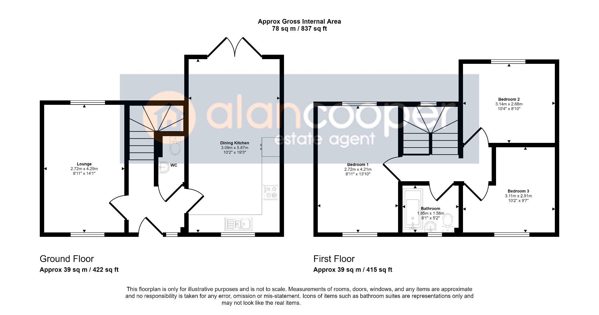 Agents NoteWe have not tested any of the electrical, central heating or sanitary ware appliances. Purchasers should make their own investigations as to the workings of the relevant items. Floor plans are for identification purposes only and not to scale. All room measurements and mileages quoted in these sales details are approximate. Subjective comments in these details imply the opinion of the selling Agent at the time these details were prepared. Naturally, the opinions of purchasers may differ. These sales details are produced in good faith to offer a guide only and do not constitute any part of a contract or offer. We would advise that fixtures and fittings included within the sale are confirmed by the purchaser at the point of offer. Images used within these details are under copyright to Alan Cooper Estates and under no circumstances are to be reproduced by a third party without prior permission.